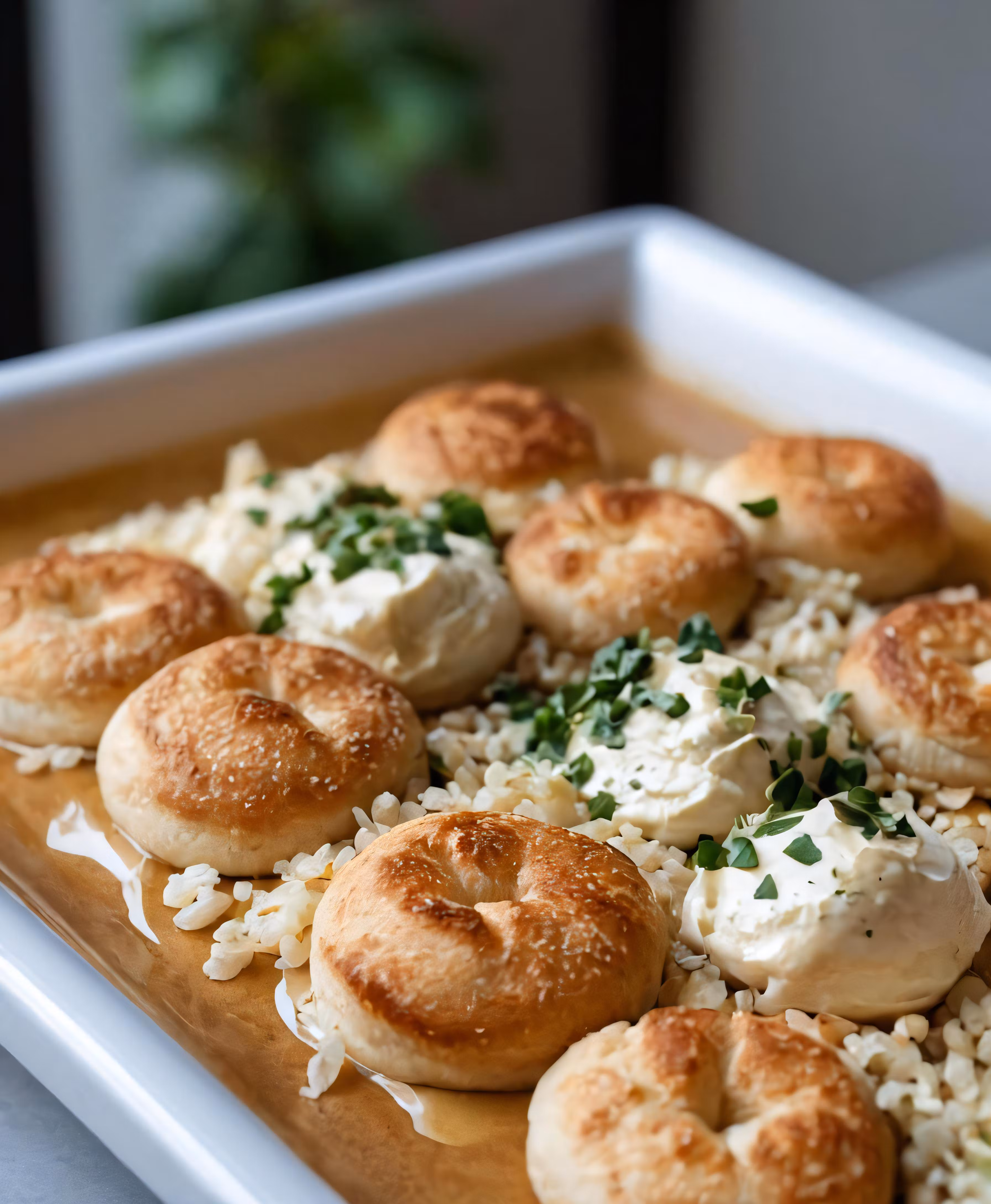 High resolution picture, free to use, a square dish of biscuits with white cream and chives on top
