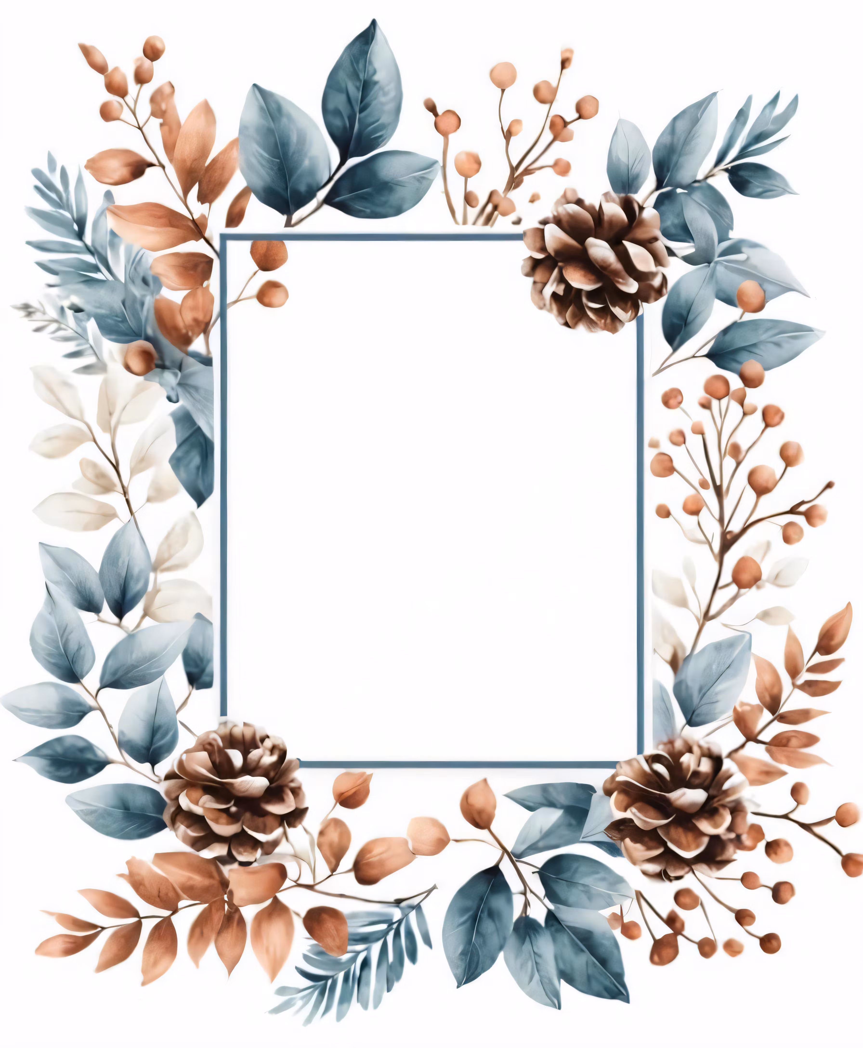 High resolution picture, free to use, a square frame with eucalyptus and pine cones