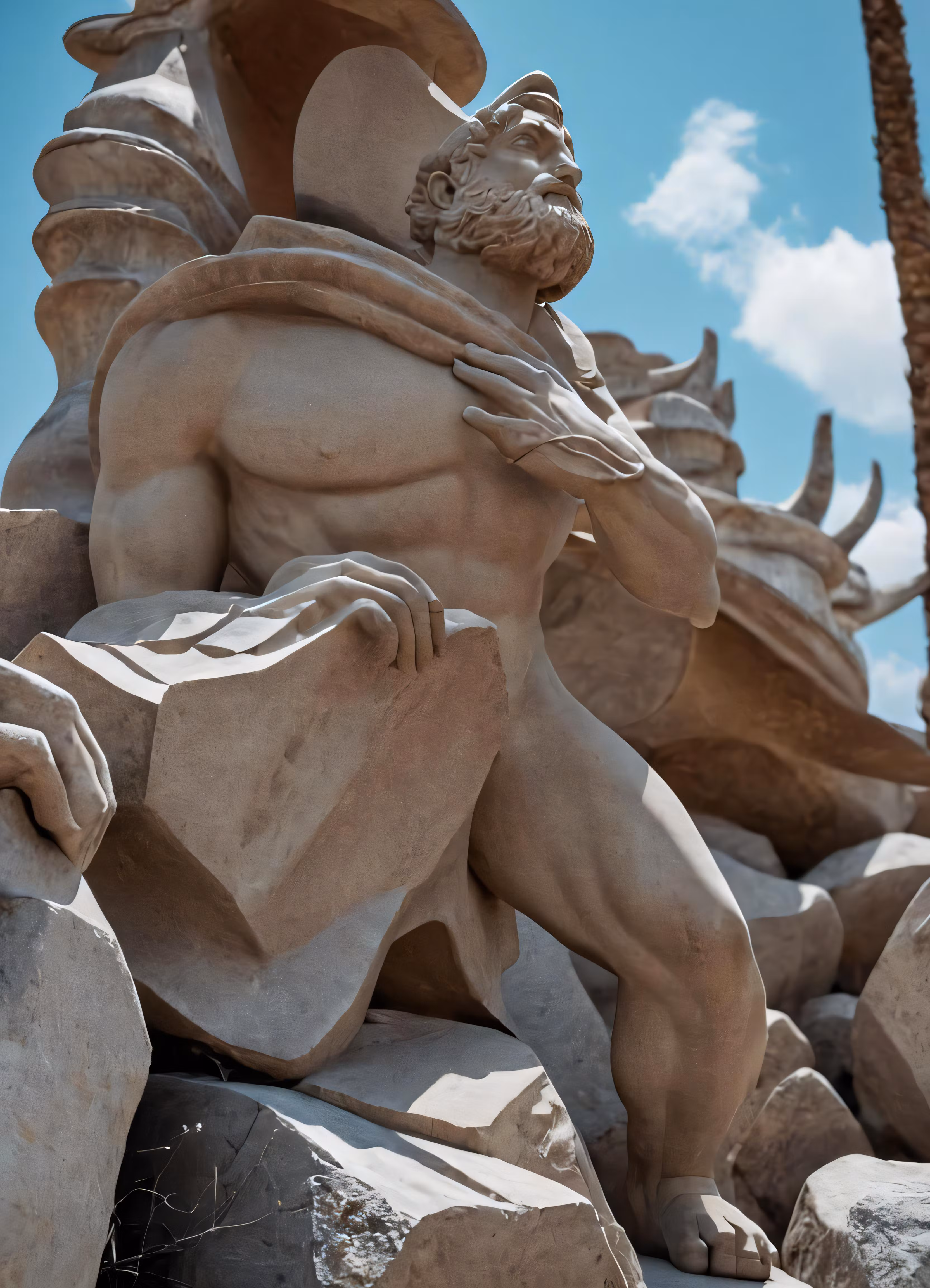 High resolution picture, free to use, a statue is shown in front of palm trees