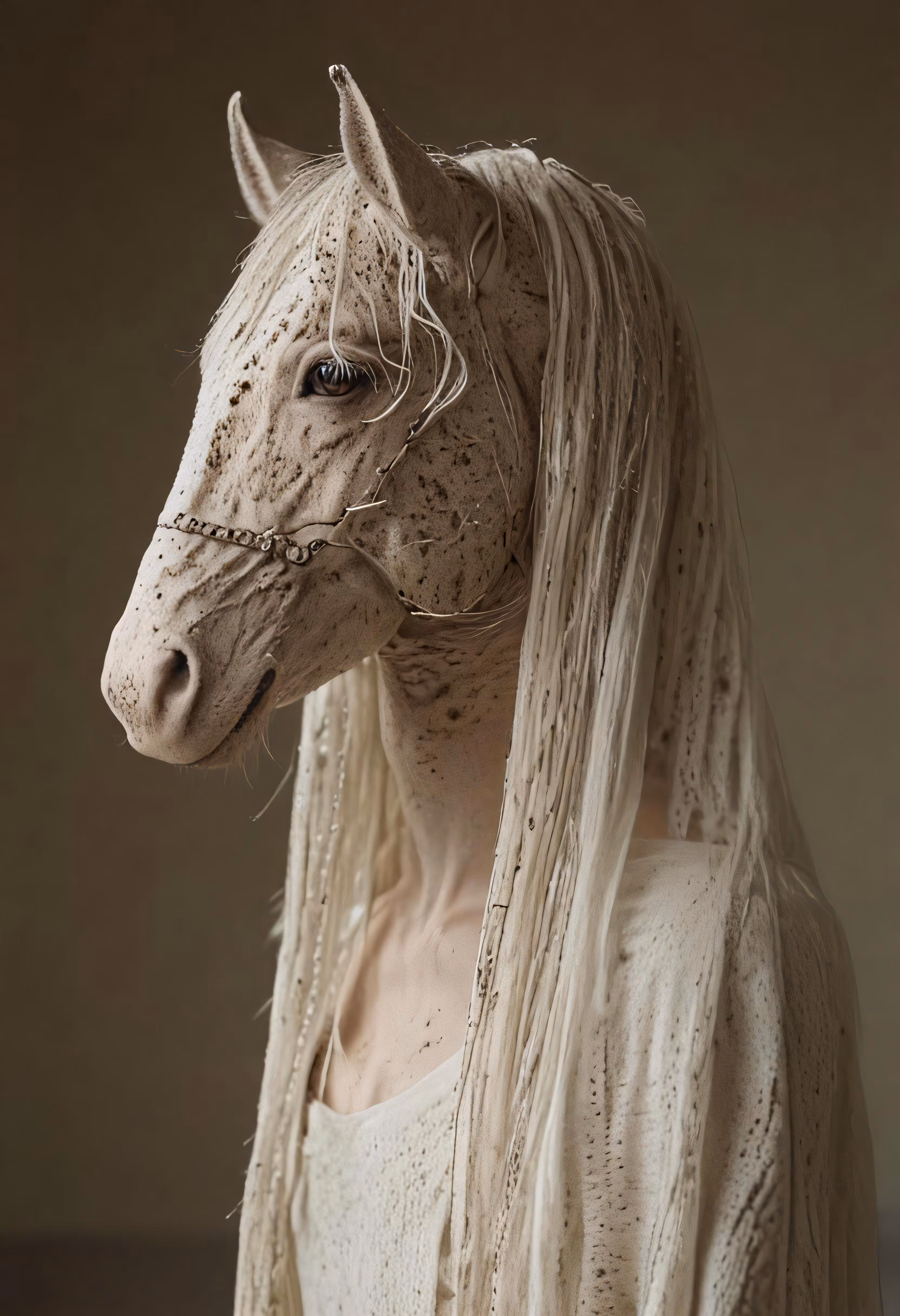 High resolution picture, free to use, a statue of a horse in white and fringes
