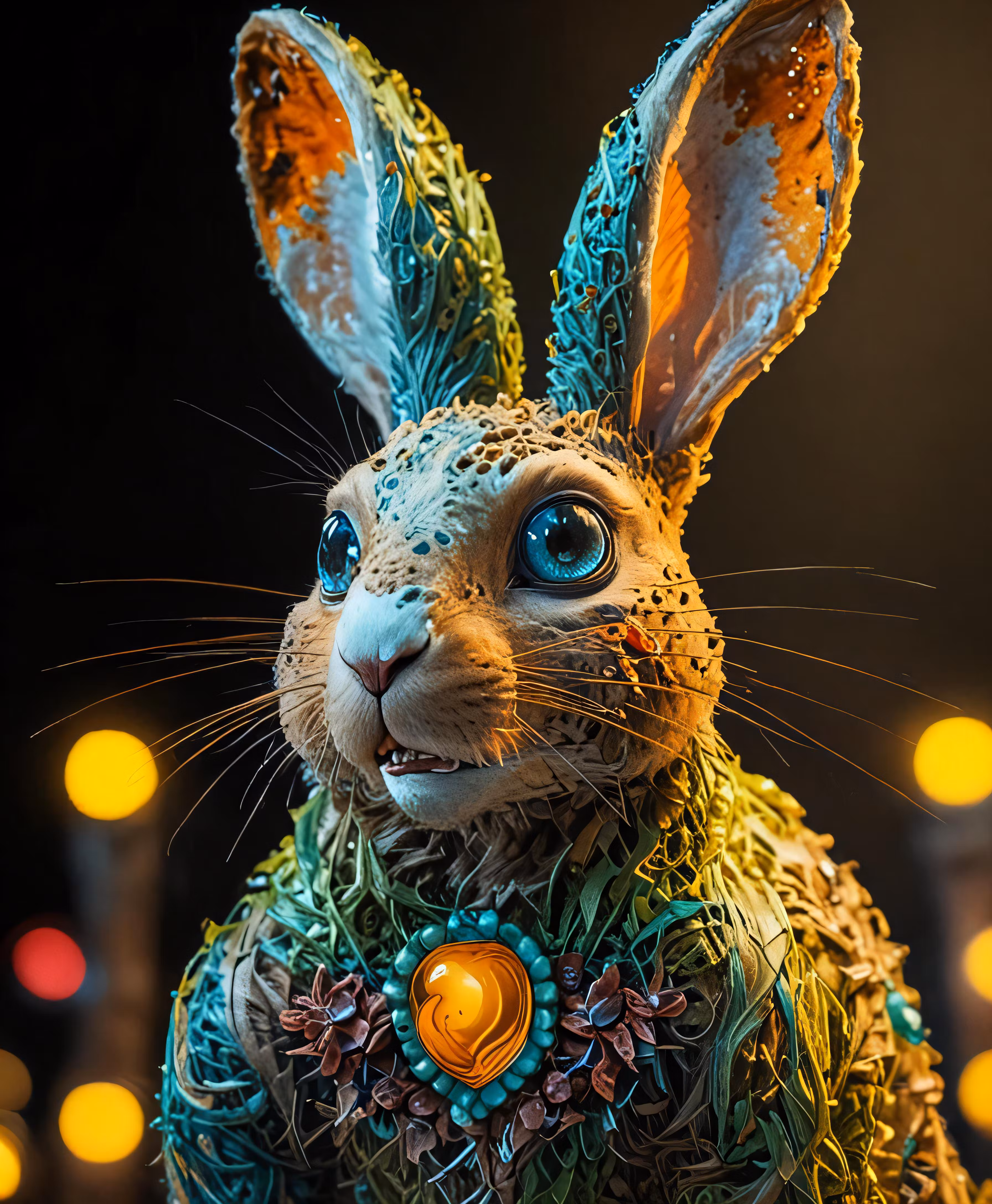 High resolution picture, free to use, a statue of a rabbit wearing a colorful outfit