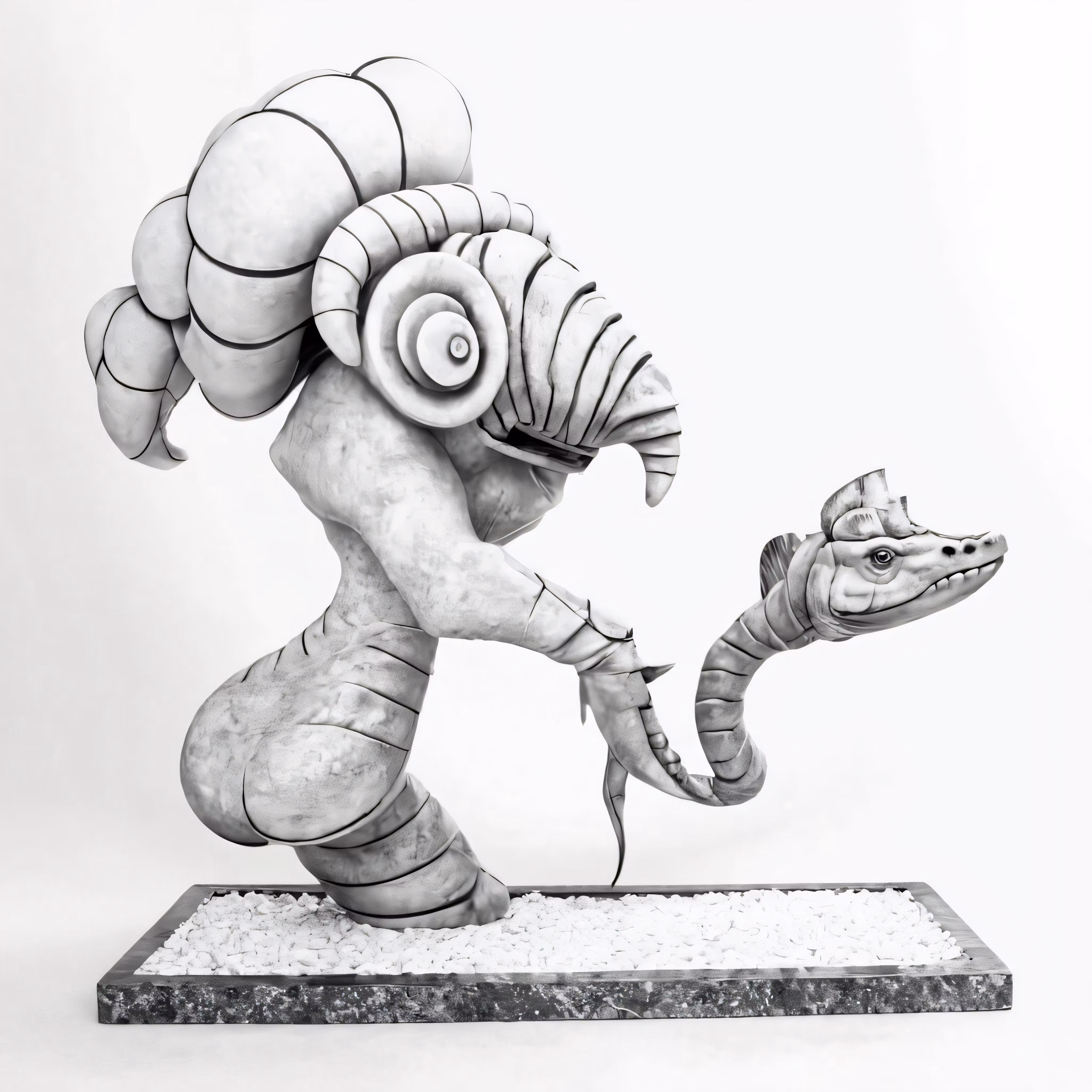 High resolution picture, free to use, a statue of a snake with large eyes and long legs