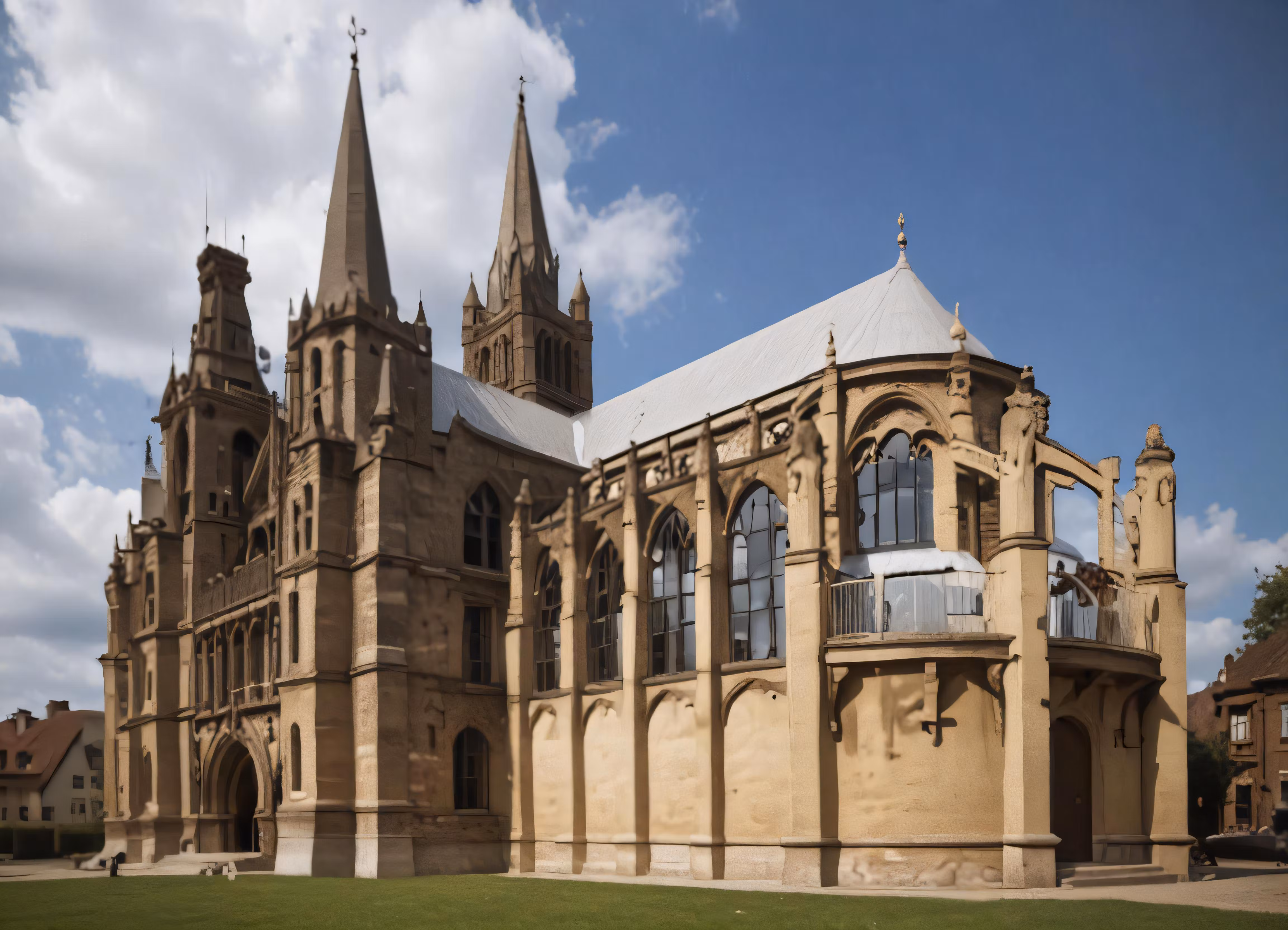 High resolution picture, free to use, a stone cathedral with two clocks built into the front
