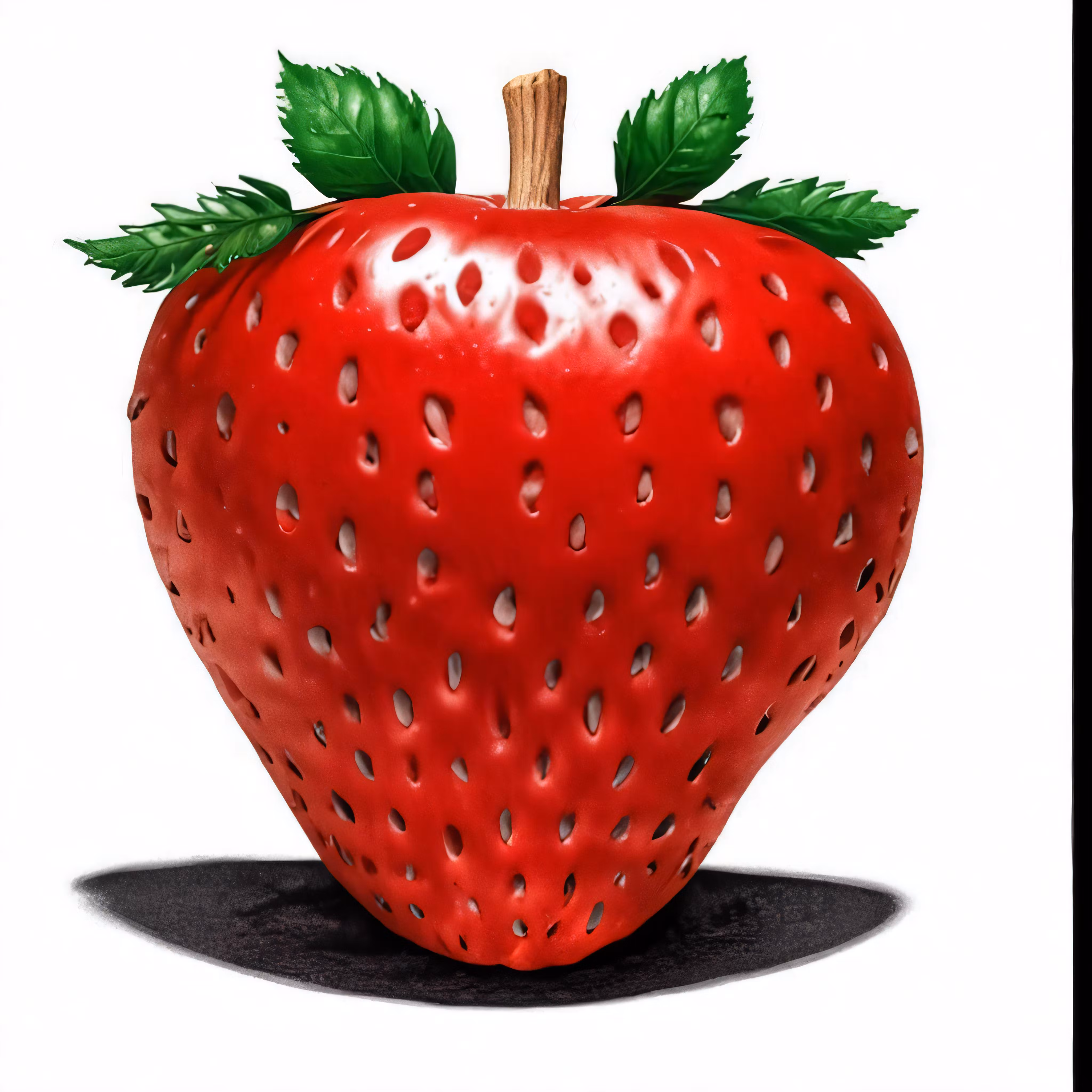 High resolution picture, free to use, a strawberry with some leaves on top of it