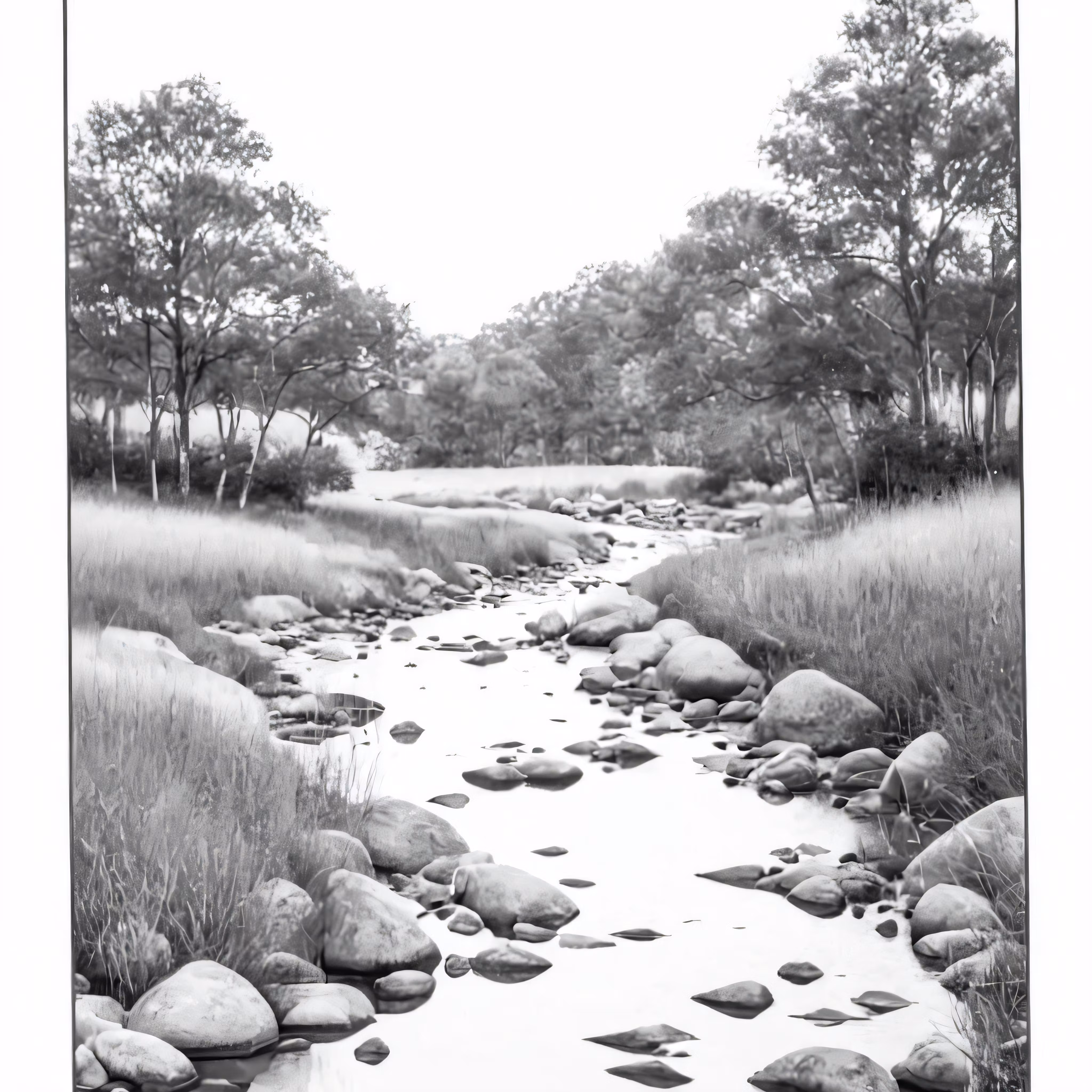 High resolution picture, free to use, a stream that is surrounded by trees and grass