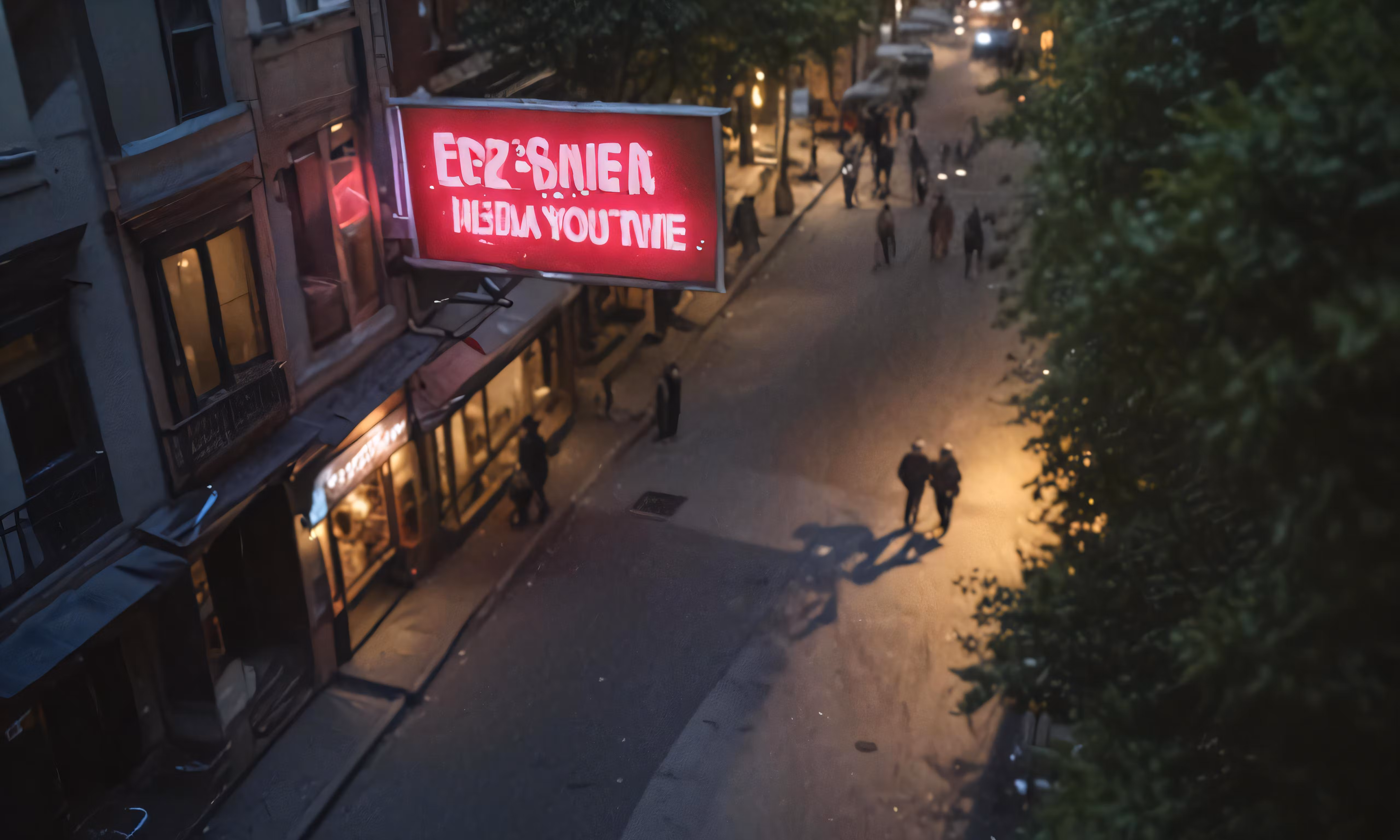 High resolution picture, free to use, a street with a large advertisement on the side