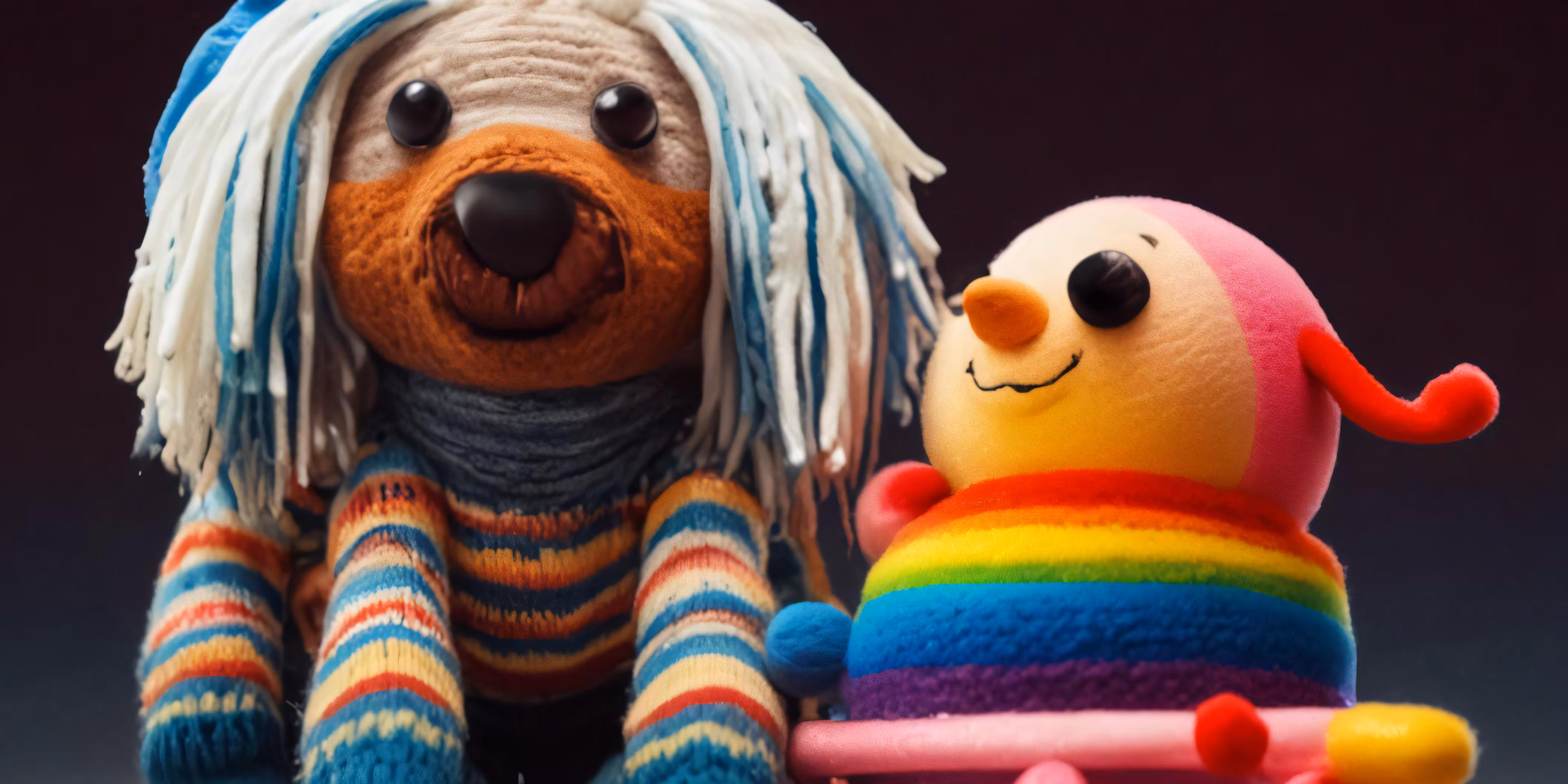High resolution picture, free to use, a stuffed animal sits with a stuffed doll