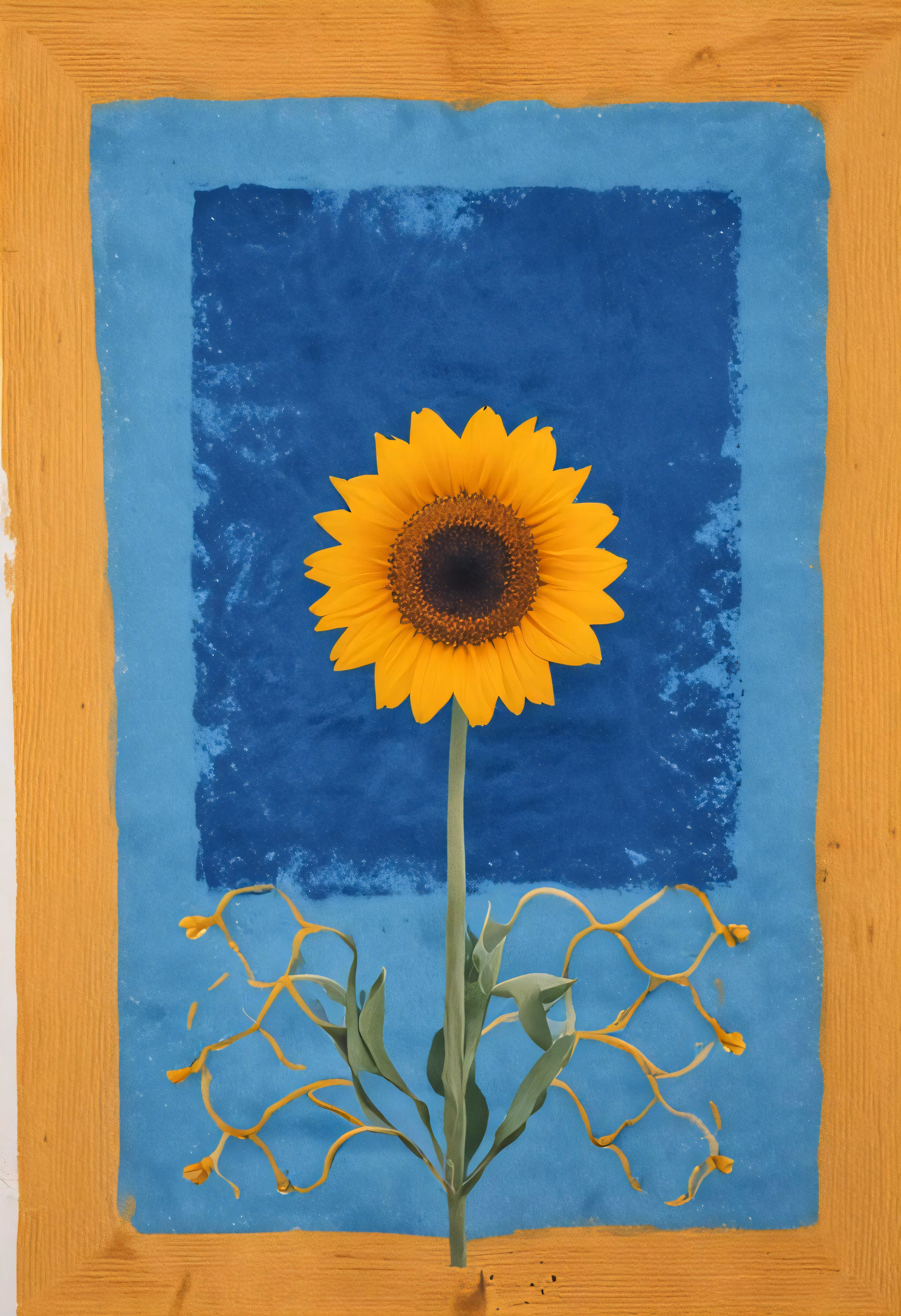 High resolution picture, free to use, a sunflower is depicted on the wall of a painting
