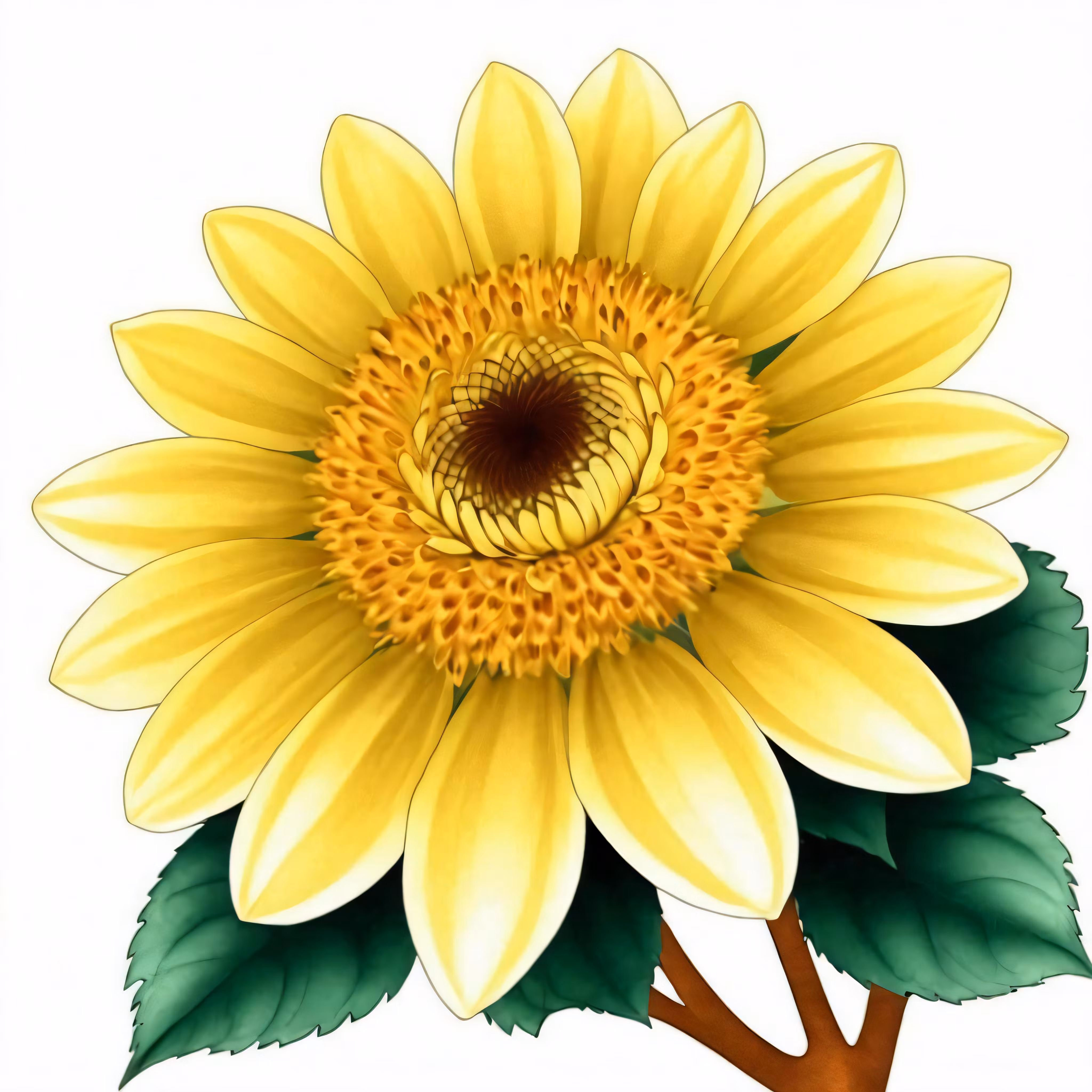 High resolution picture, free to use, a sunflower on a branch with leaves