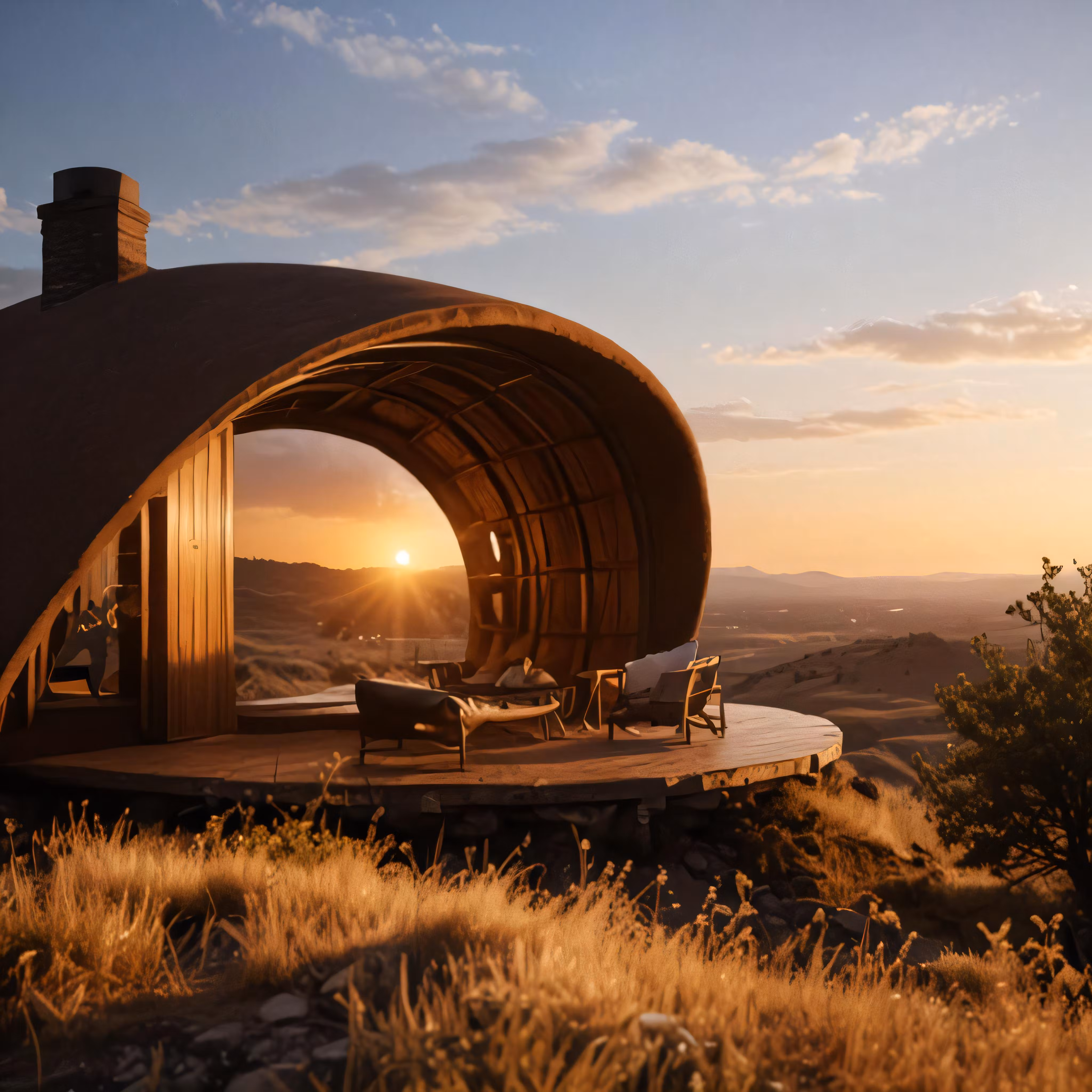 High resolution picture, free to use, a sunlit area at sunset where there is a living area in the desert
