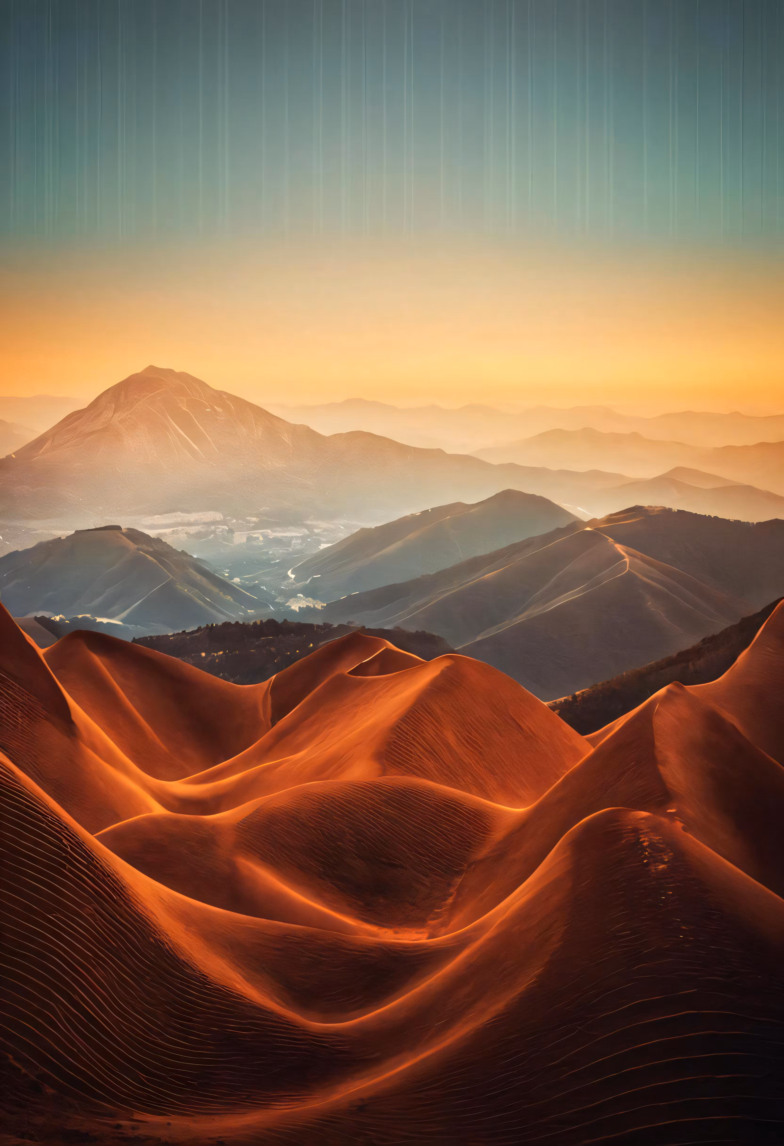 High resolution picture, free to use, a sunrise over a desert landscape with dunes