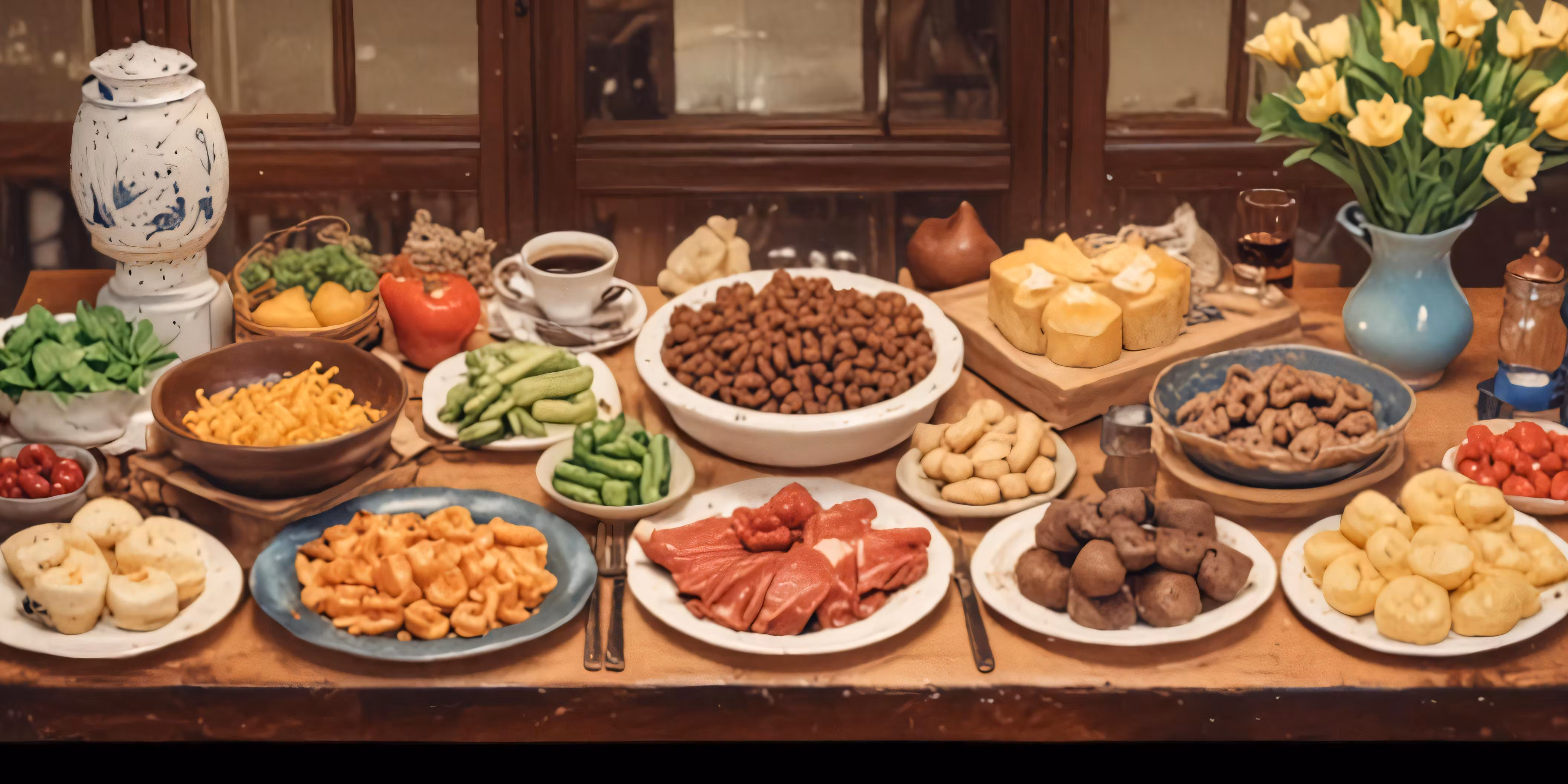 High resolution picture, free to use, a table filled with lots of plates full of food