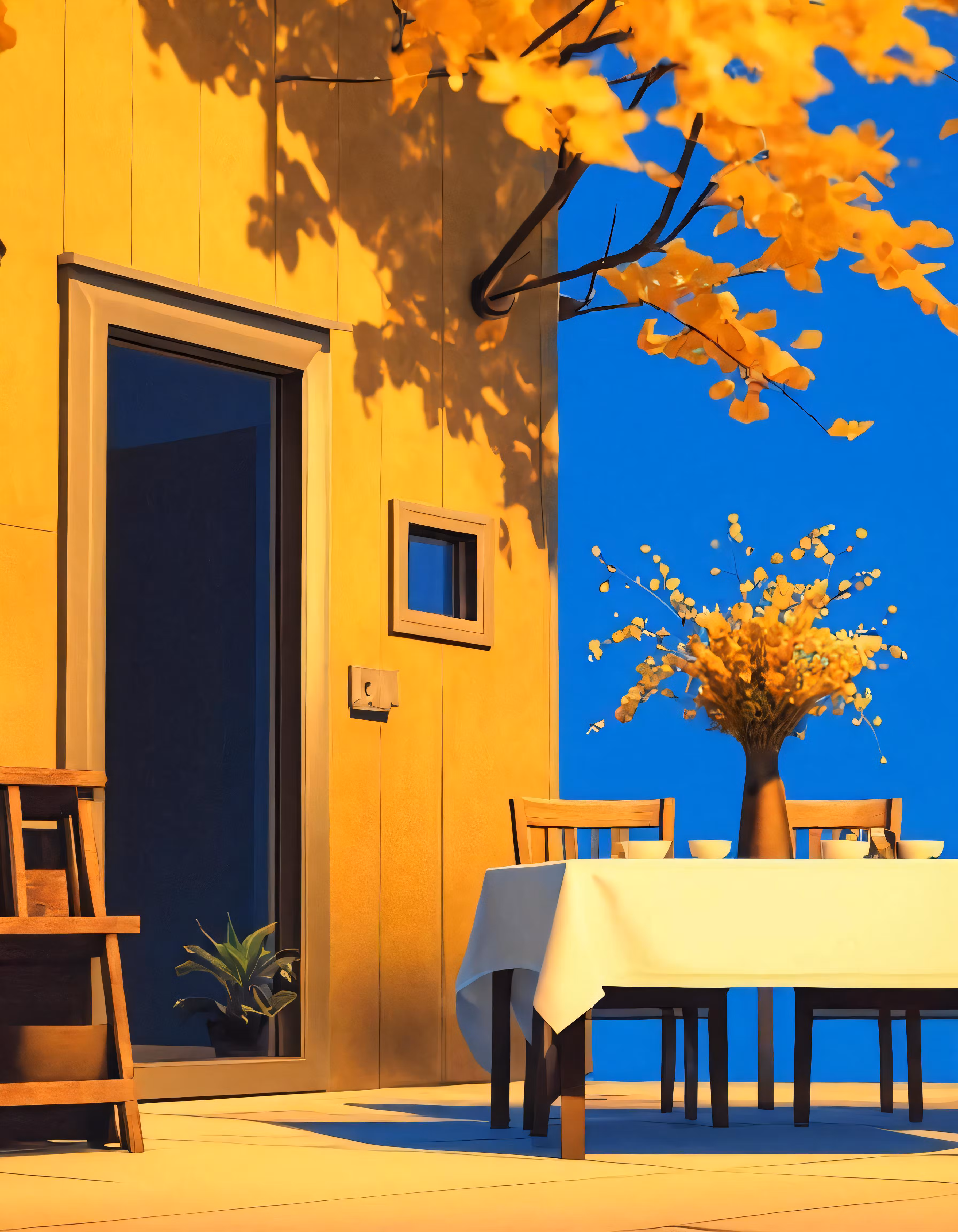 High resolution picture, free to use, a table outside with chairs and a vase of flowers
