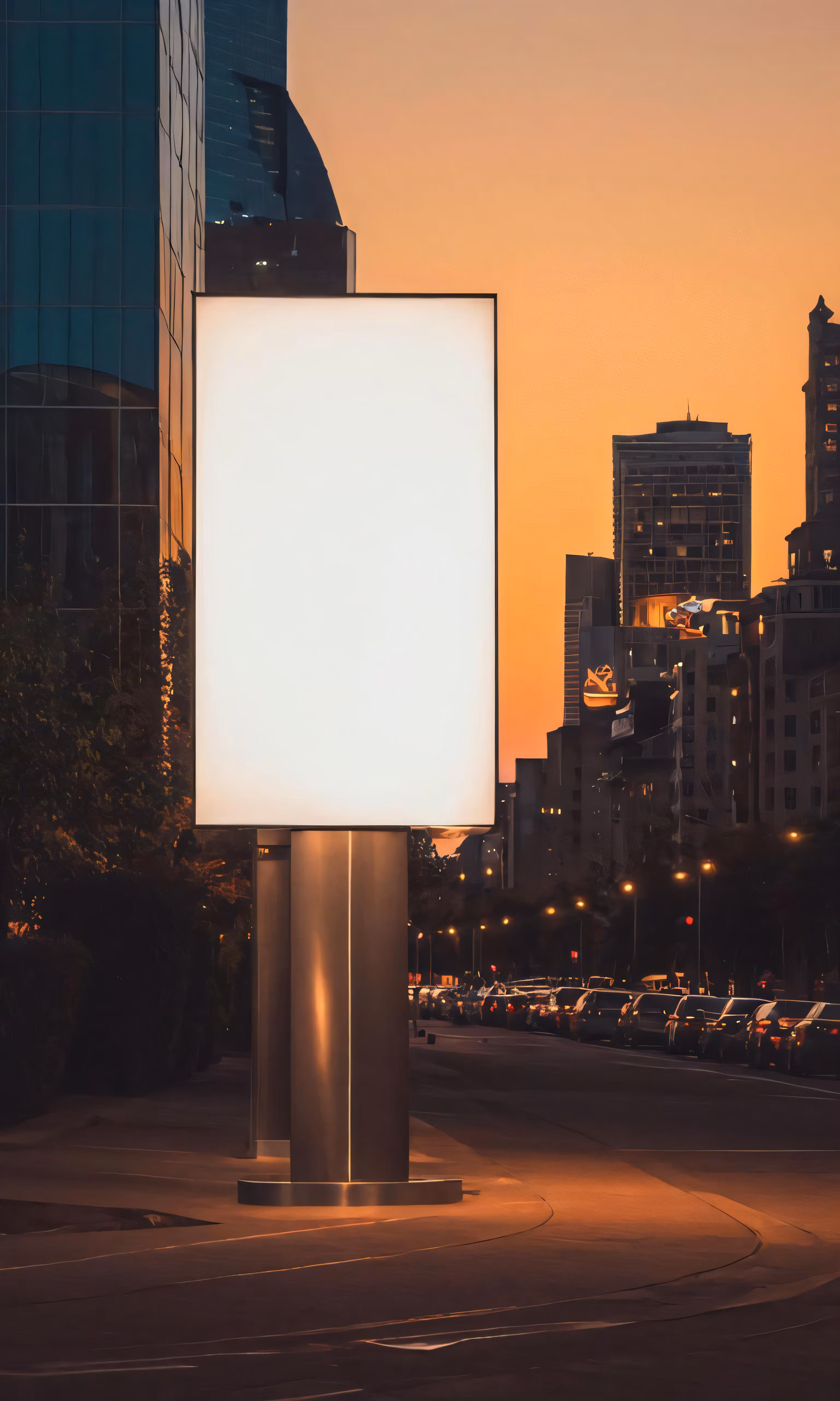 High resolution picture, free to use, a tall billboard with a big white square at night