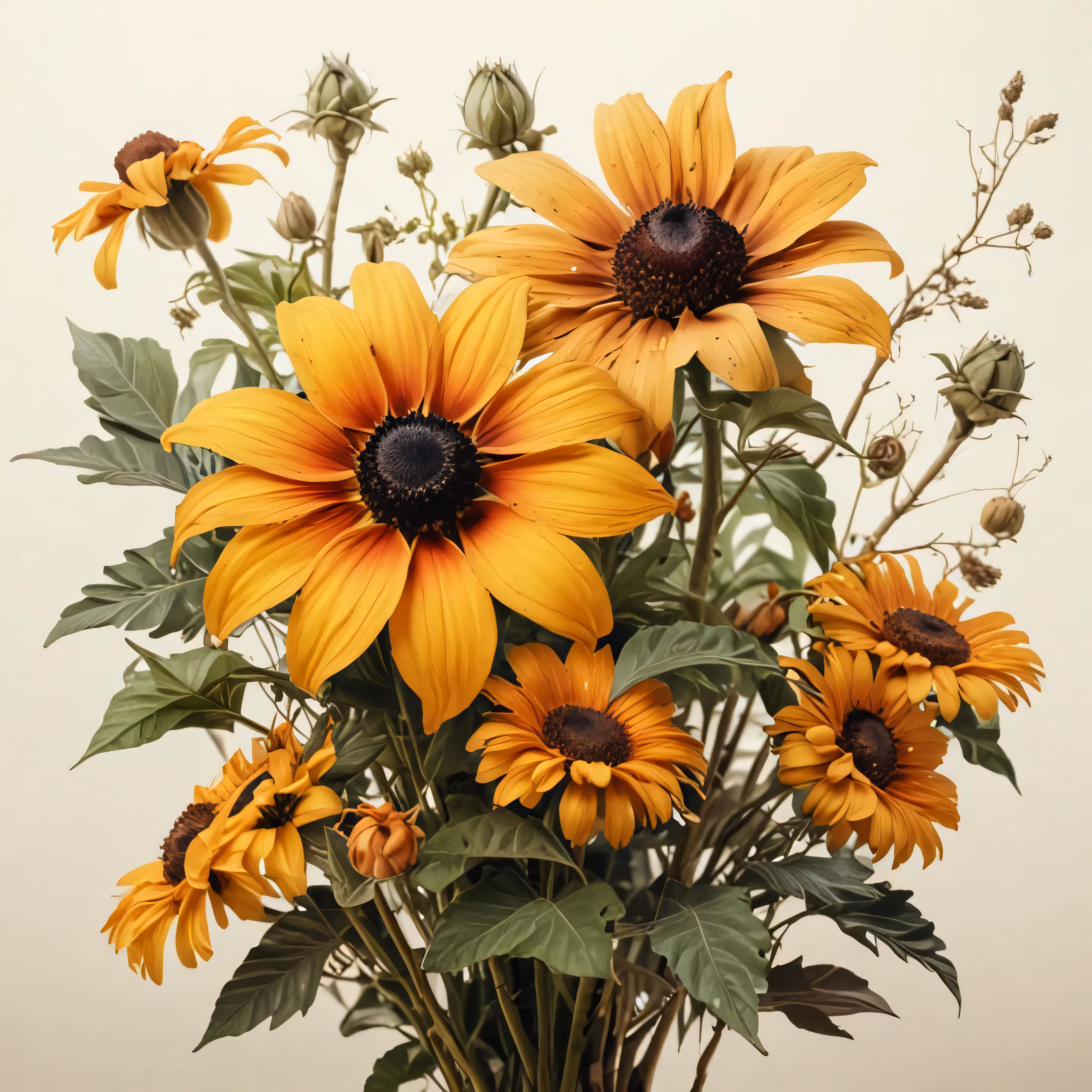 High resolution picture, free to use, a tall vase full of yellow flowers in it