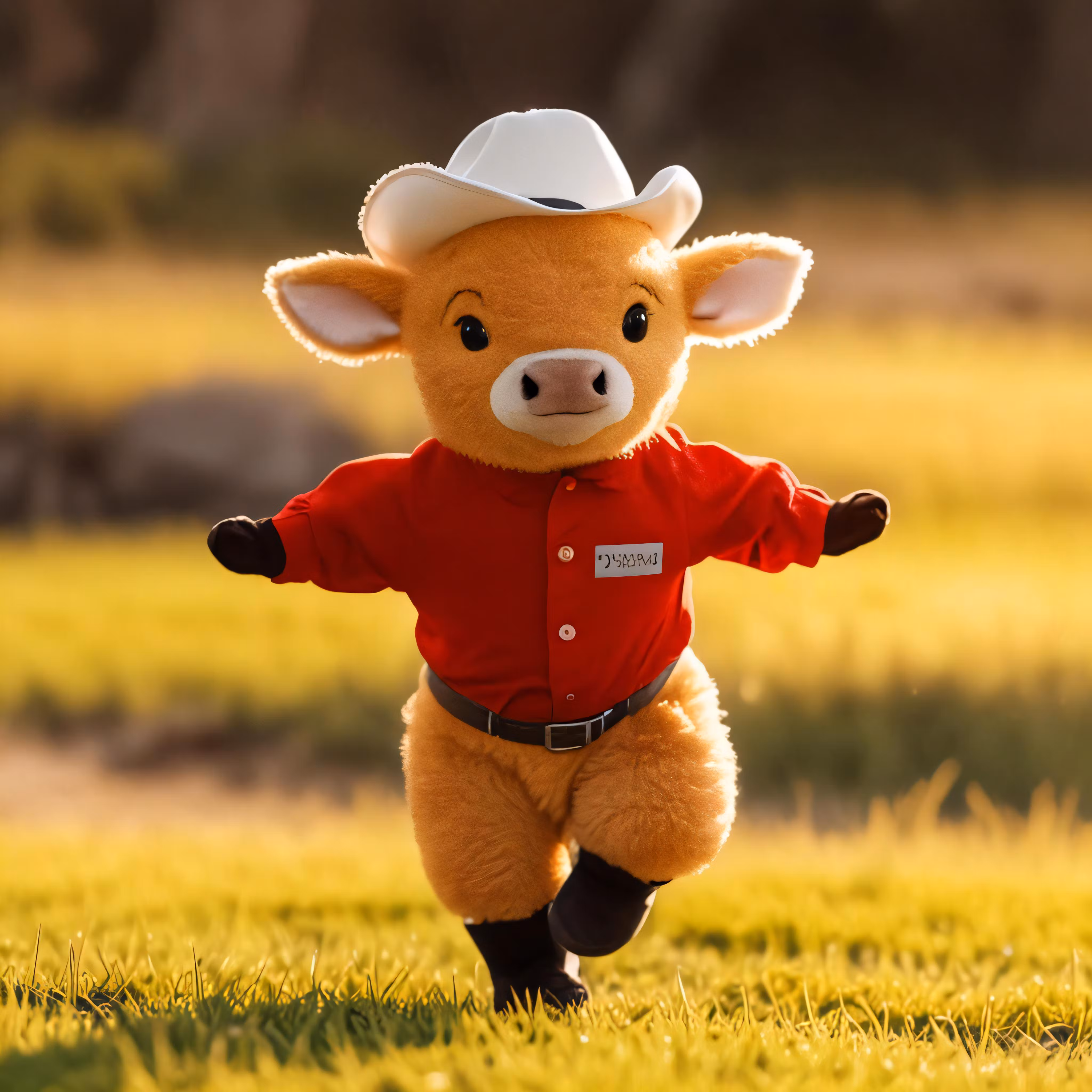 High resolution picture, free to use, a teddy bear dressed in a red shirt and a cowboy hat