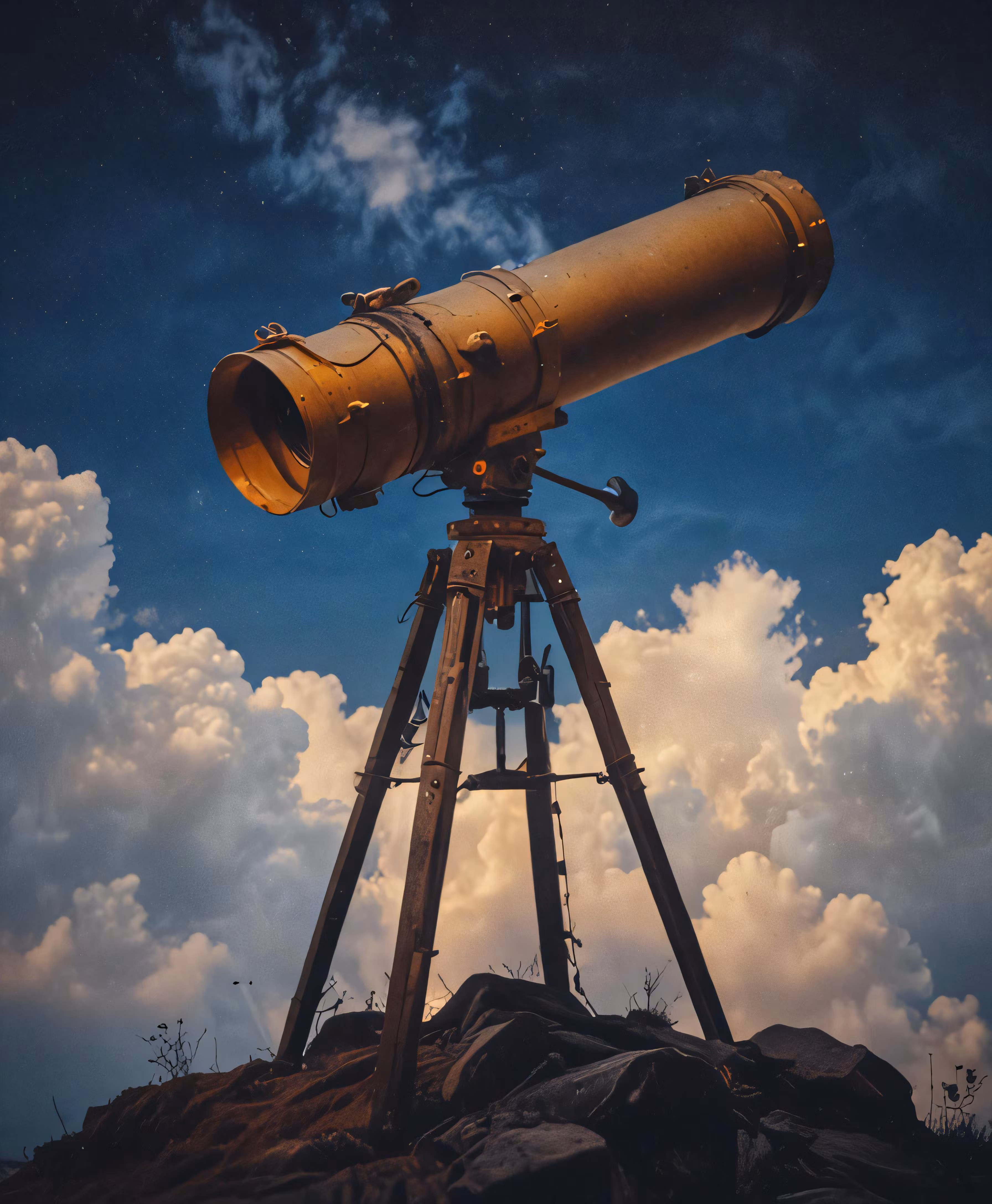 High resolution picture, free to use, a telescope set on top of a tripod in the sky