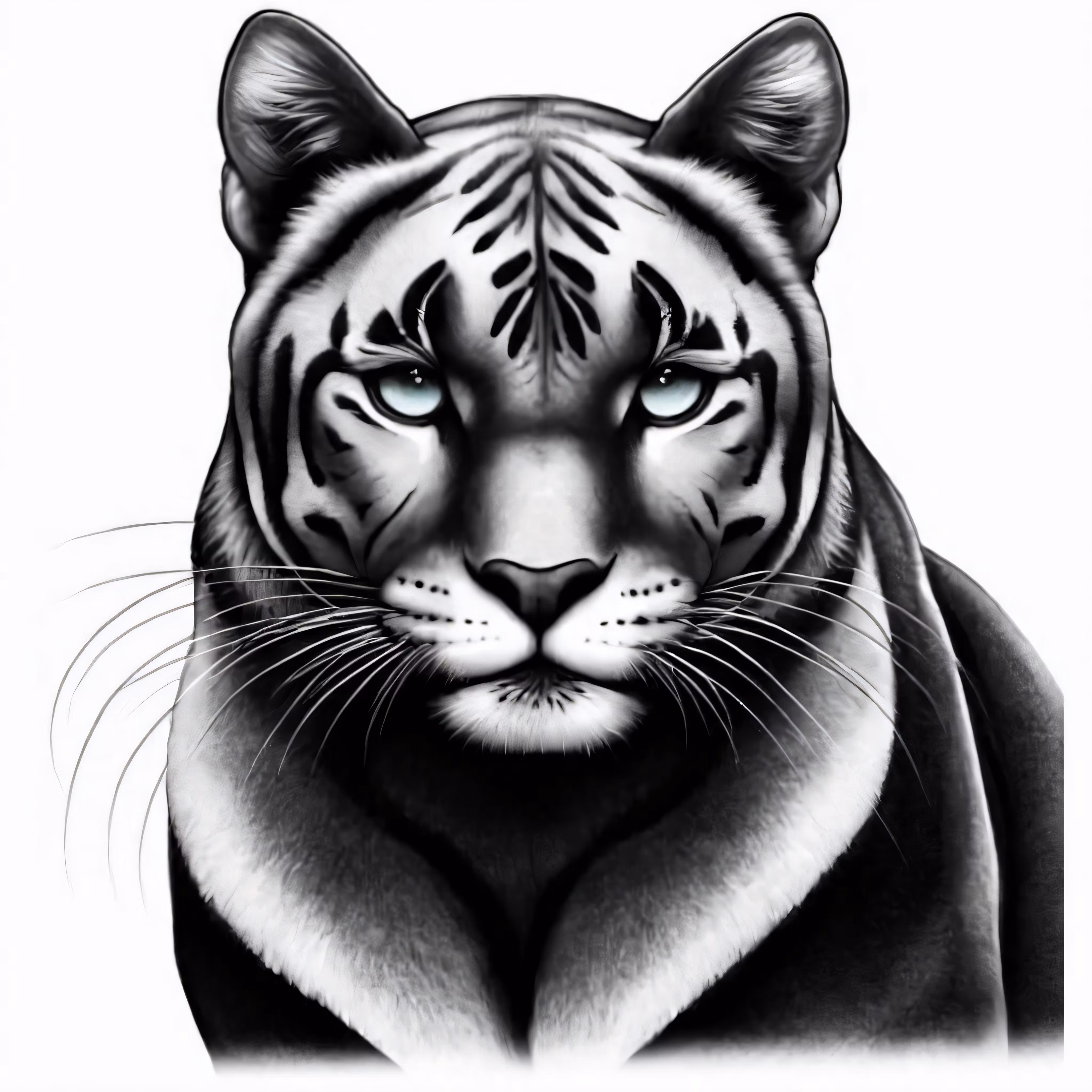 High resolution picture, free to use, a tiger drawn in charcoal and white