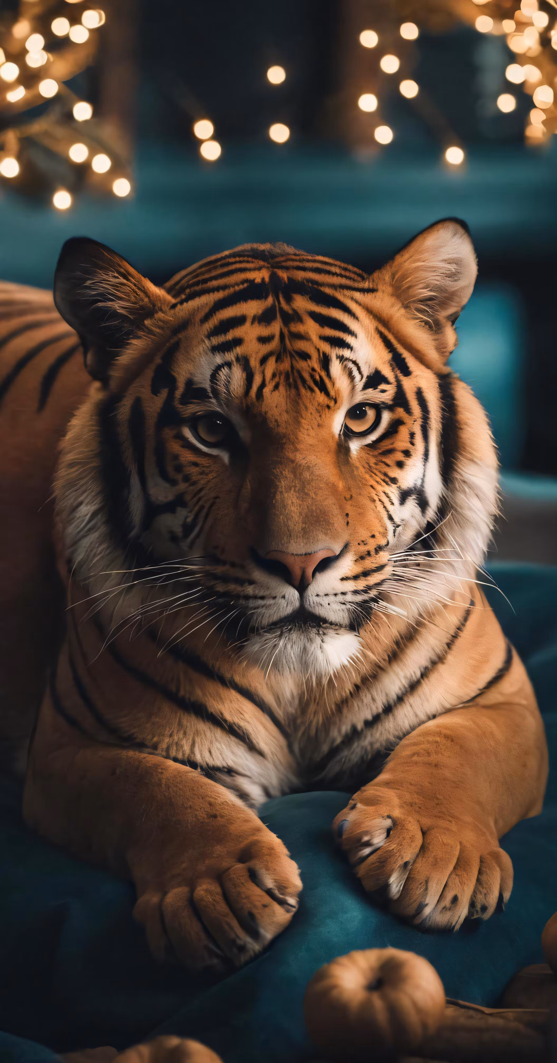 High resolution picture, free to use, a tiger lying on top of a bed next to a window
