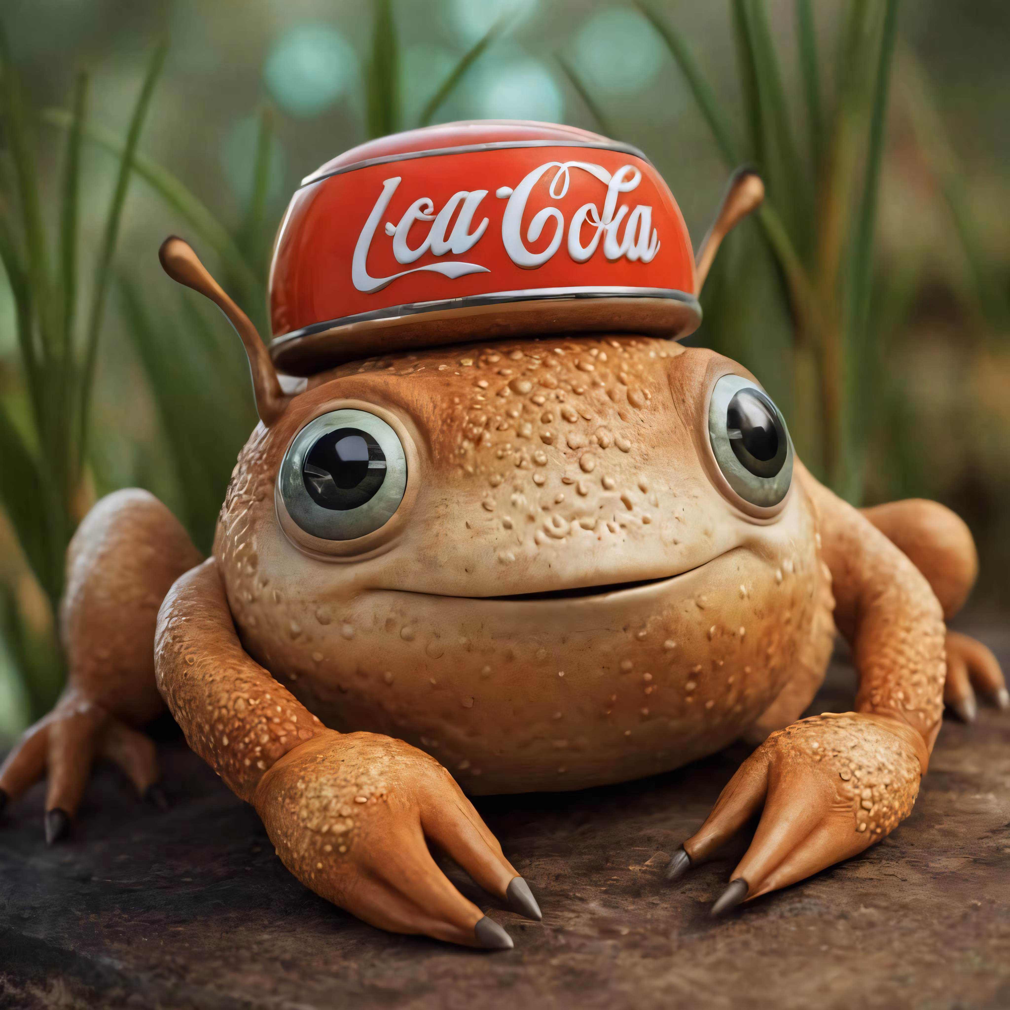 High resolution picture, free to use, a toadgy with a soda cola cap on his head