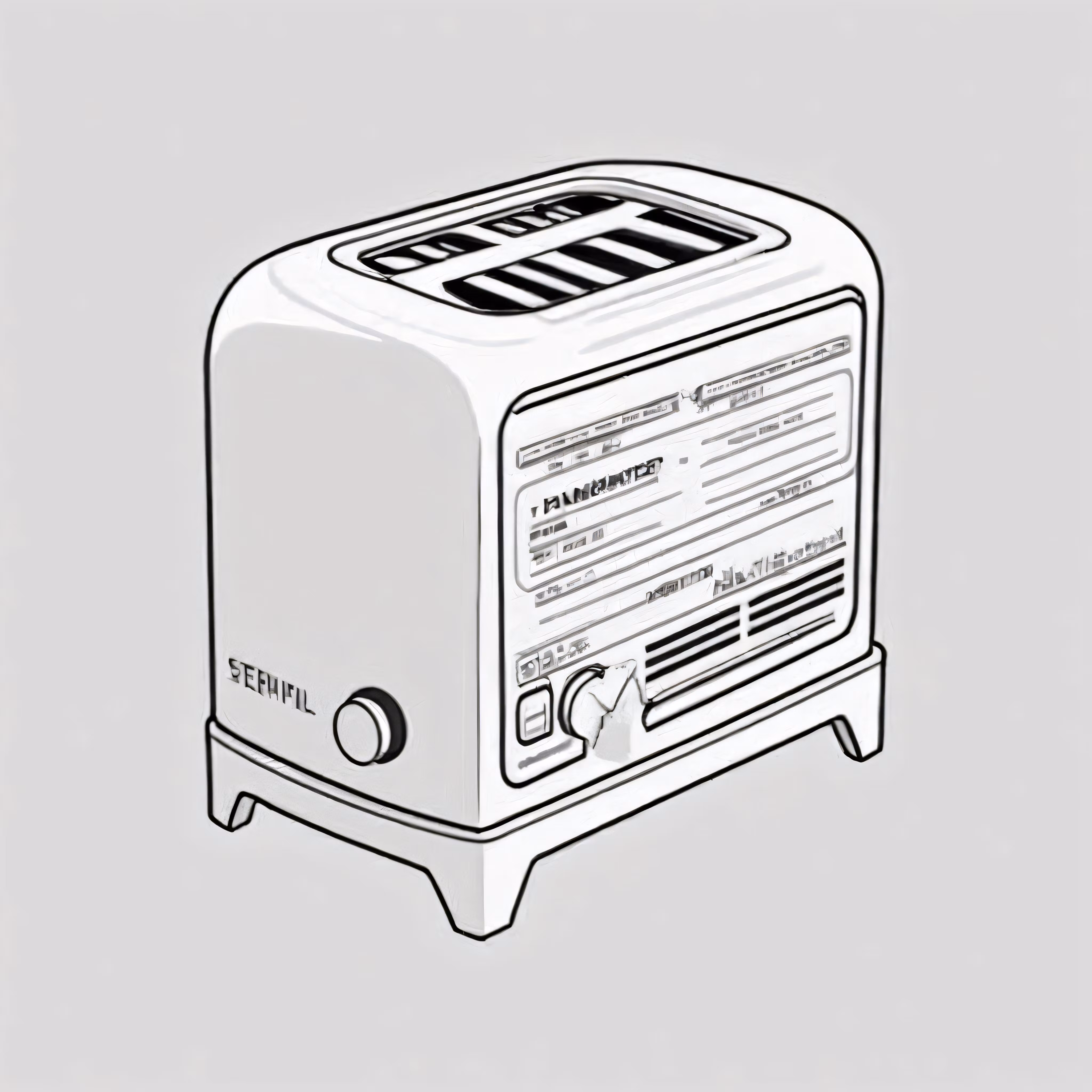 High resolution picture, free to use, a toaster with the lid off is shown in an illustrated drawing