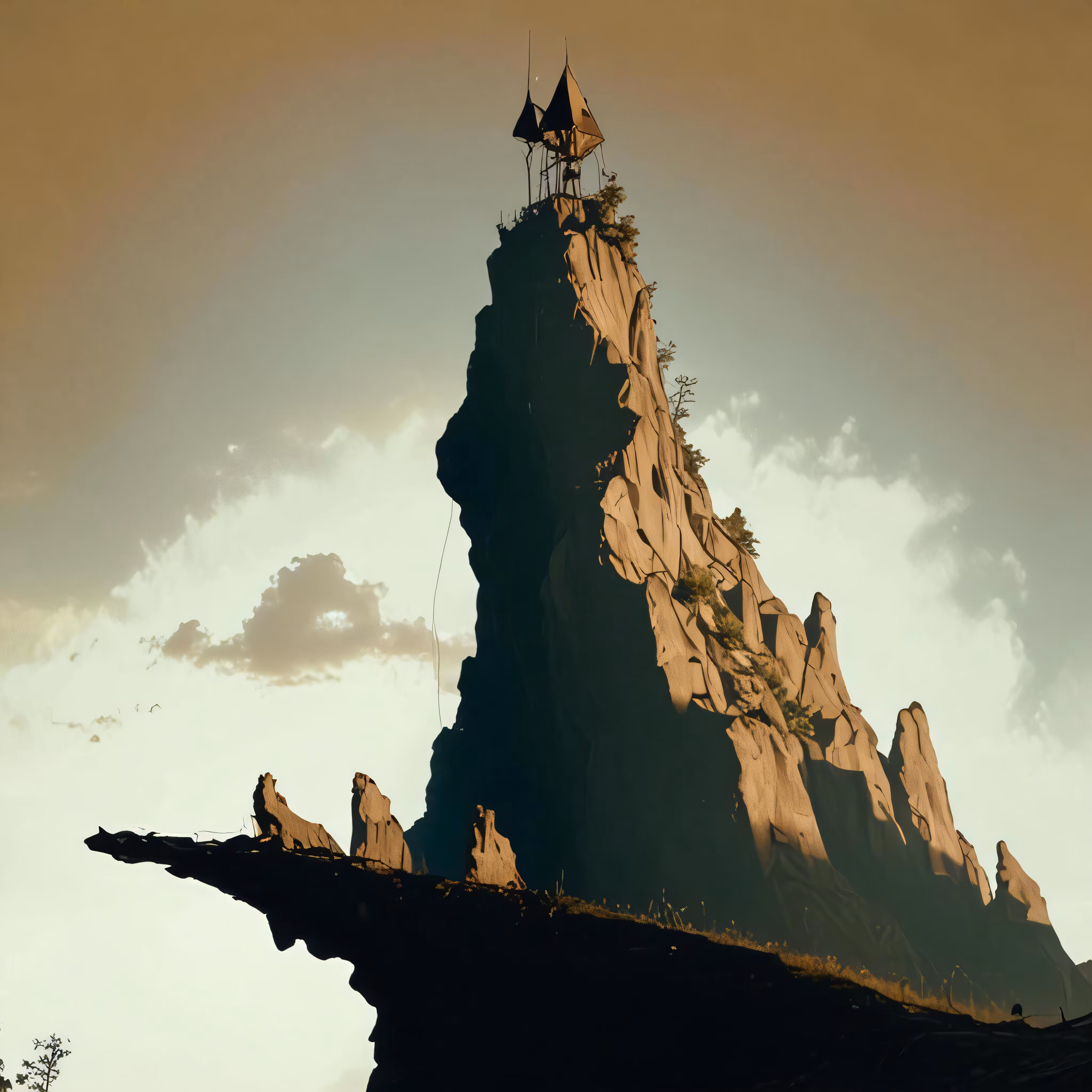 High resolution picture, free to use, a tower that is next to a tree on a rock