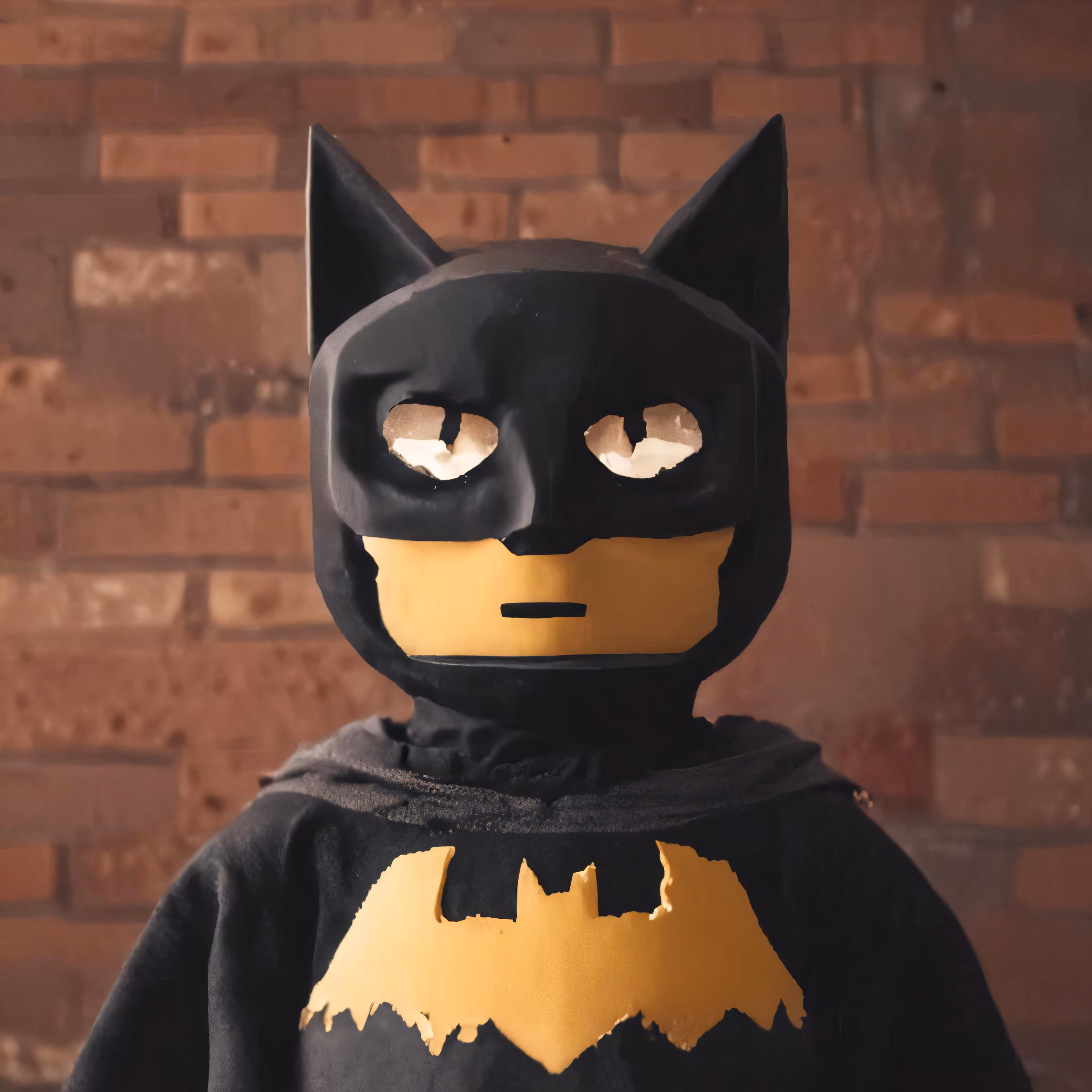 High resolution picture, free to use, a toy batman with dark eyes and a hood on
