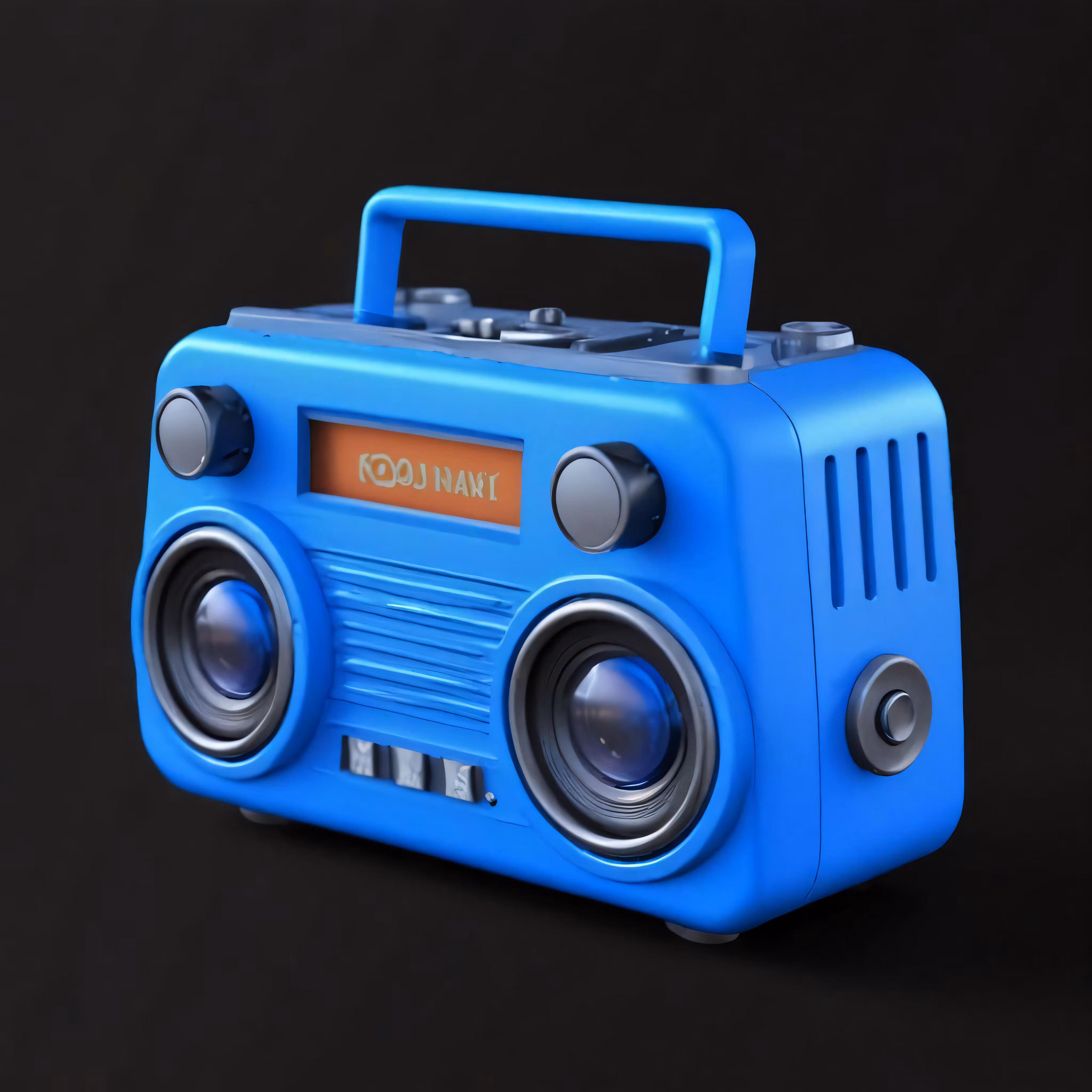 High resolution picture, free to use, a toy blue radio with two speakers on it