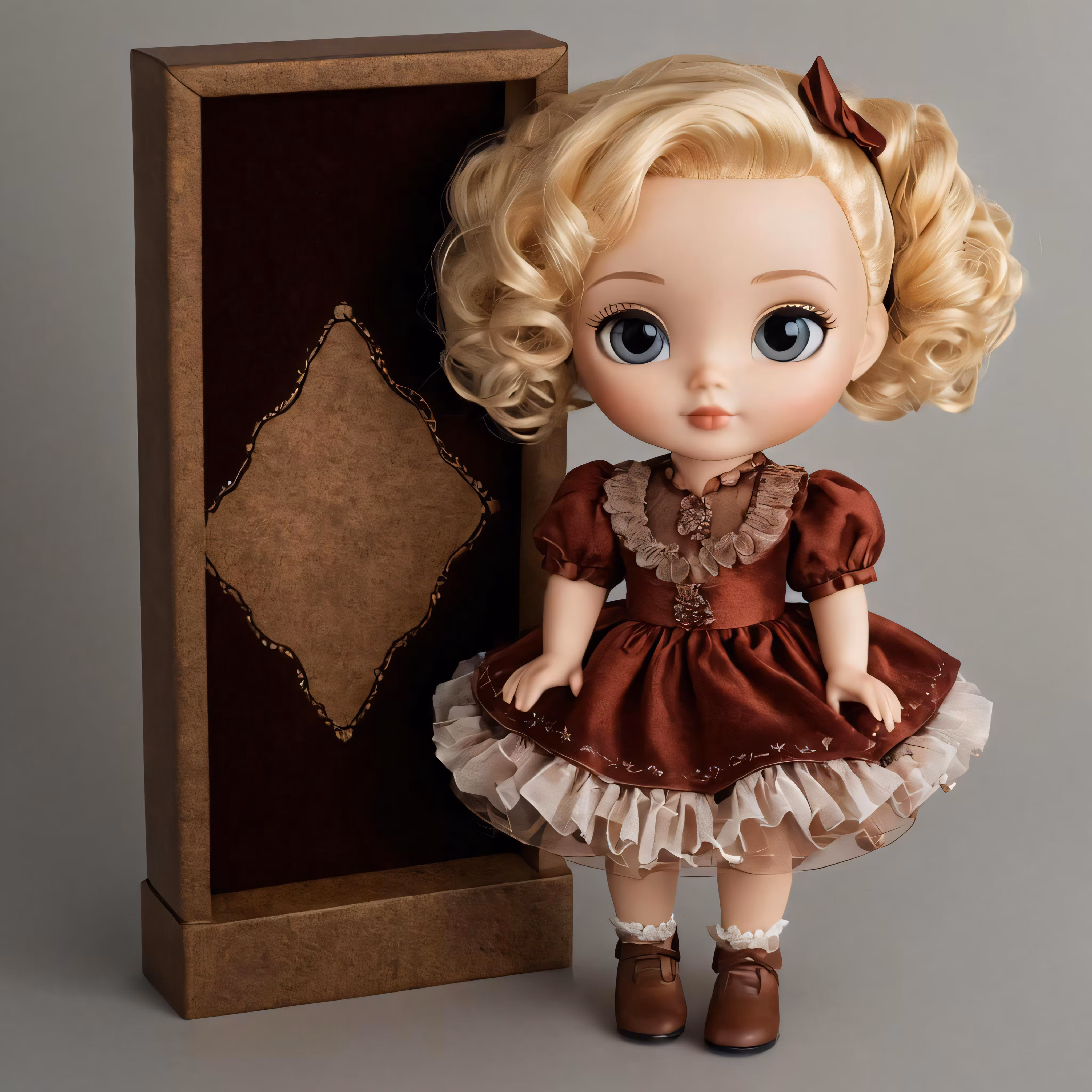 High resolution picture, free to use, a toy doll is posed next to a cabinet