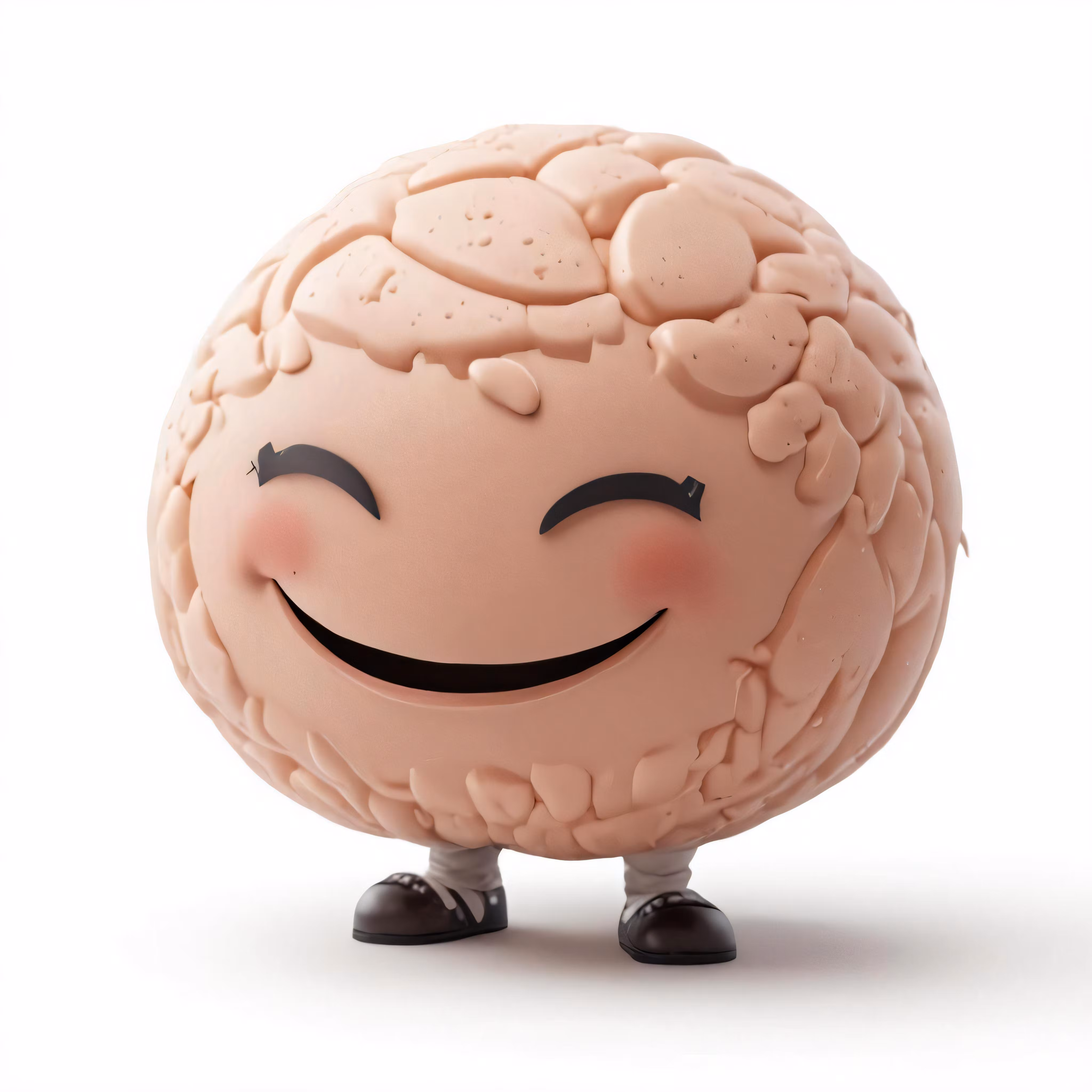 High resolution picture, free to use, a toy figure has a smiling brain on his head