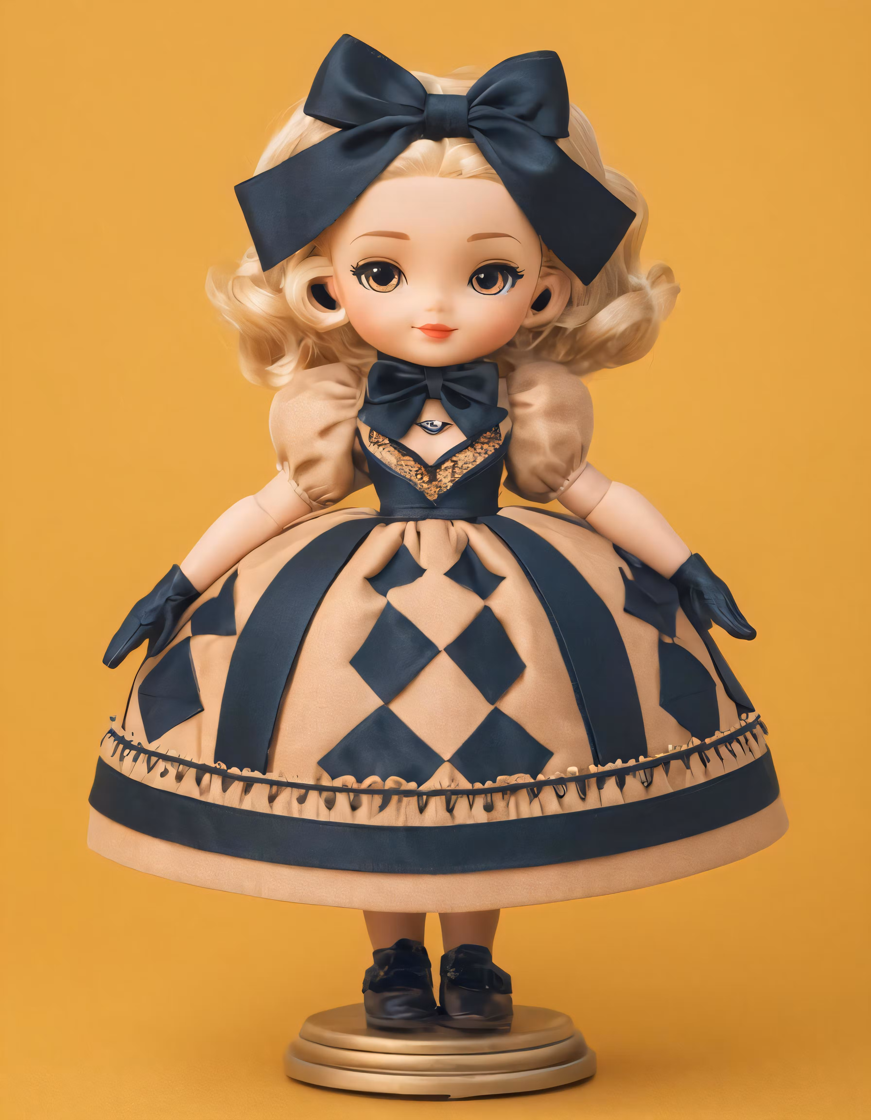 High resolution picture, free to use, a toy figurine wearing a dress made of paper
