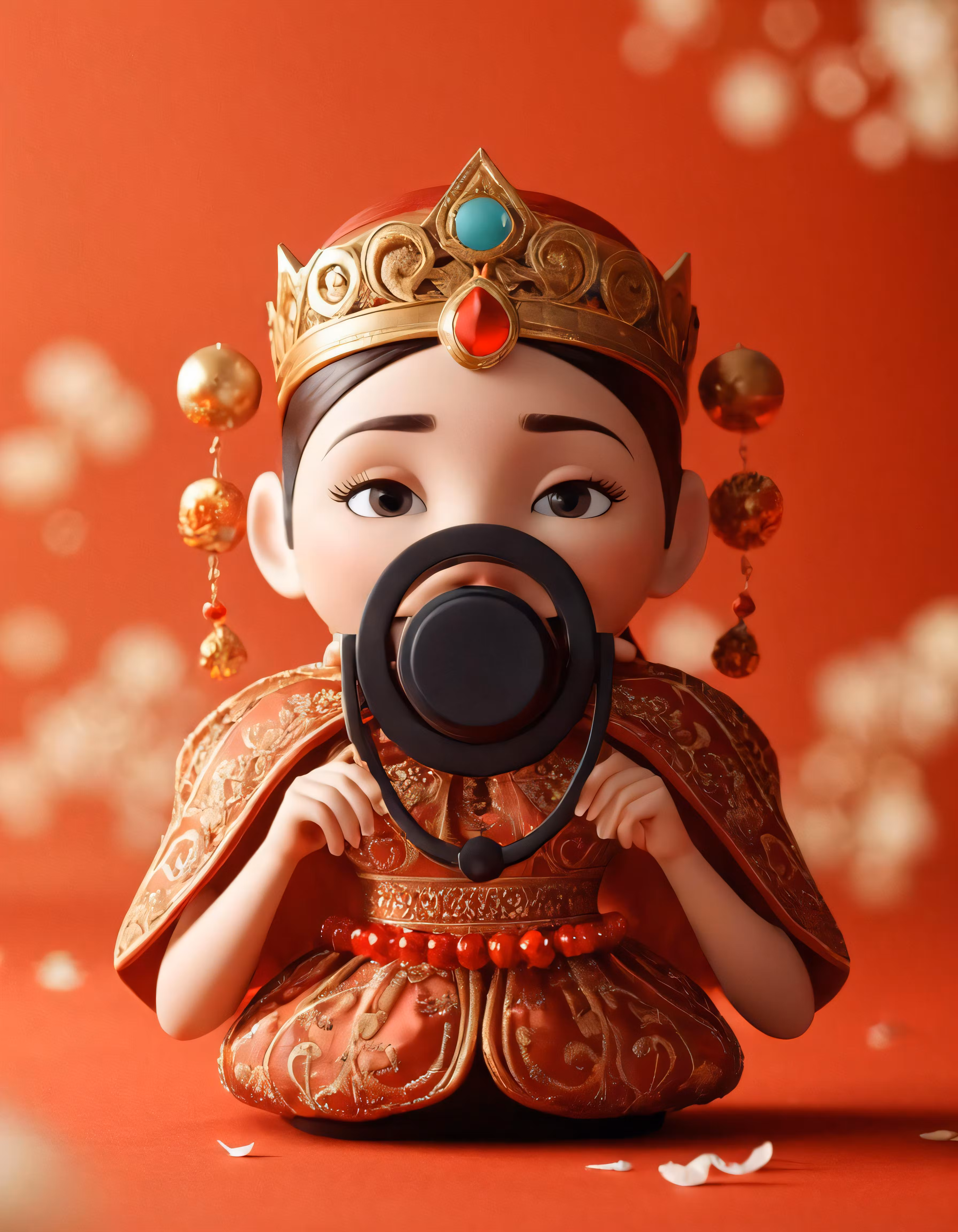 High resolution picture, free to use, a toy in chinese clothing holding a camera