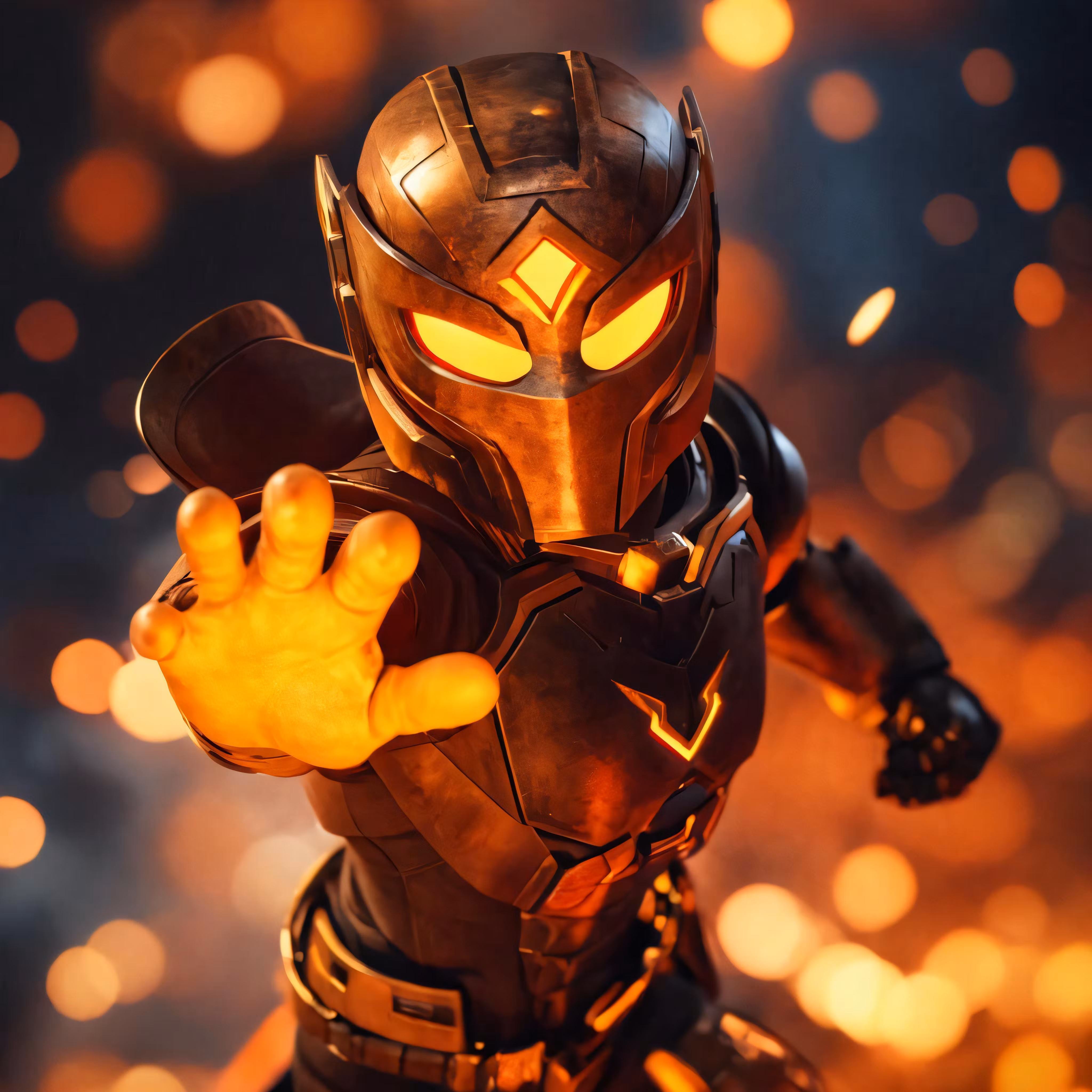 High resolution picture, free to use, a toy man in a suit standing next to many lights