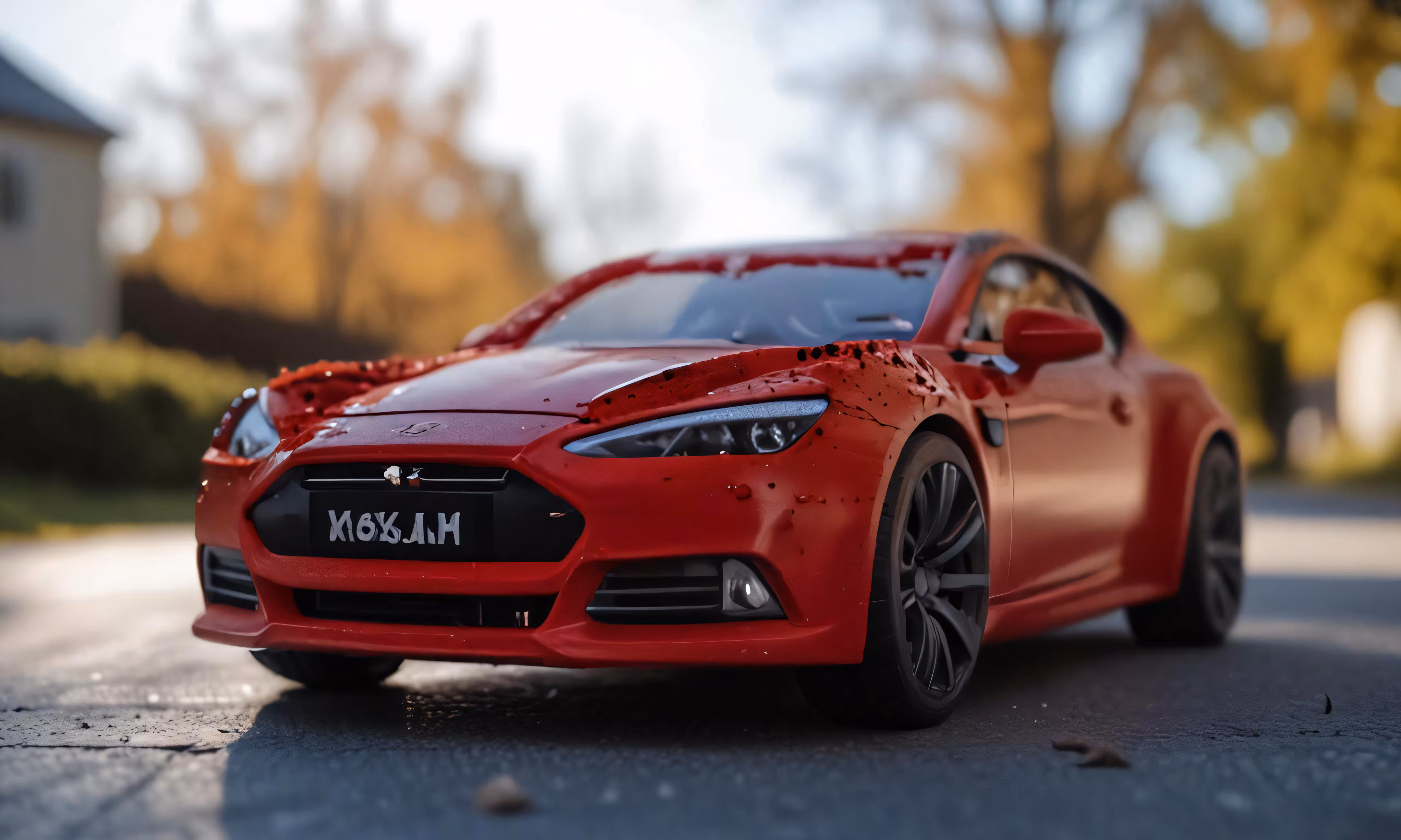 High resolution picture, free to use, a toy masera on the street in front of a house