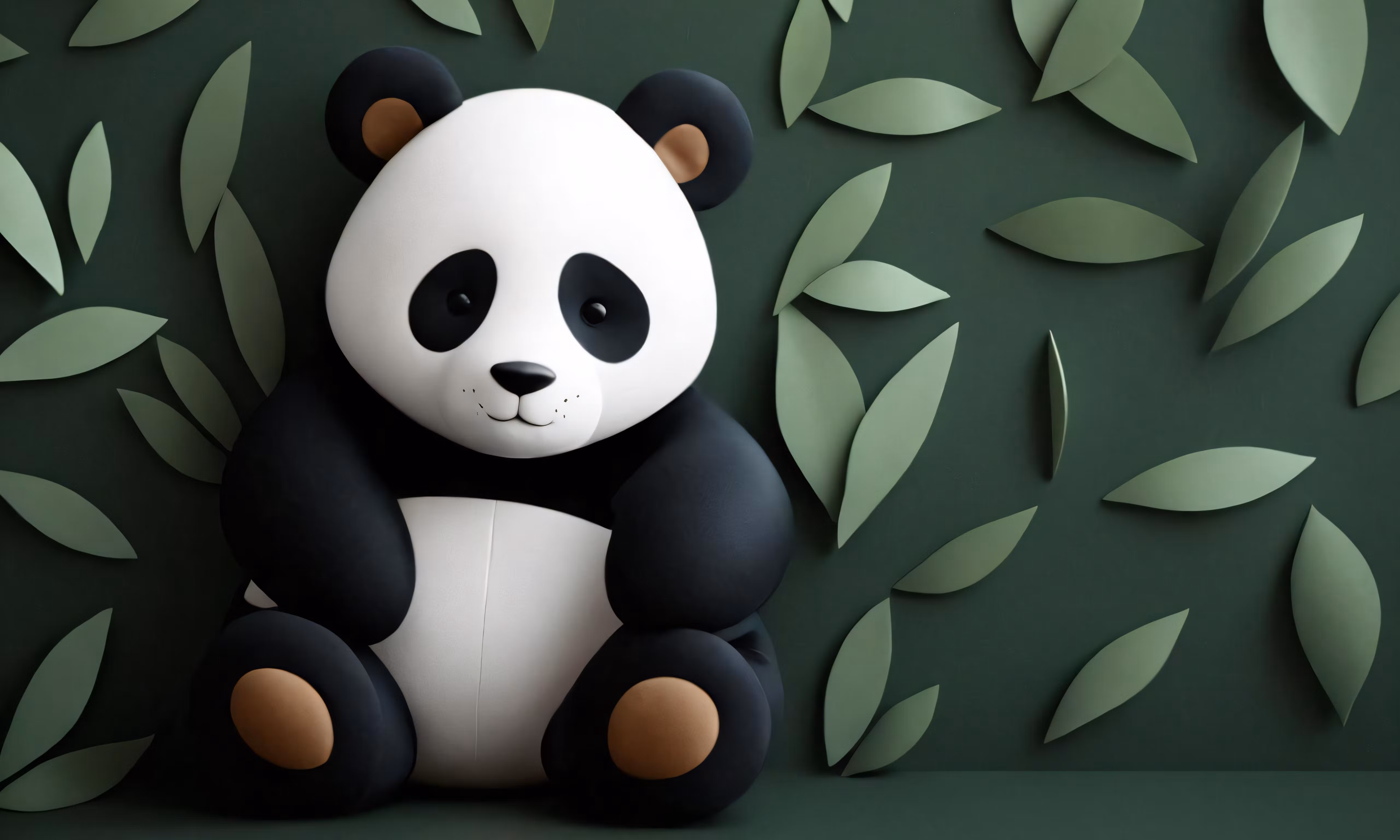 High resolution picture, free to use, a toy panda bear is sitting on a green floor