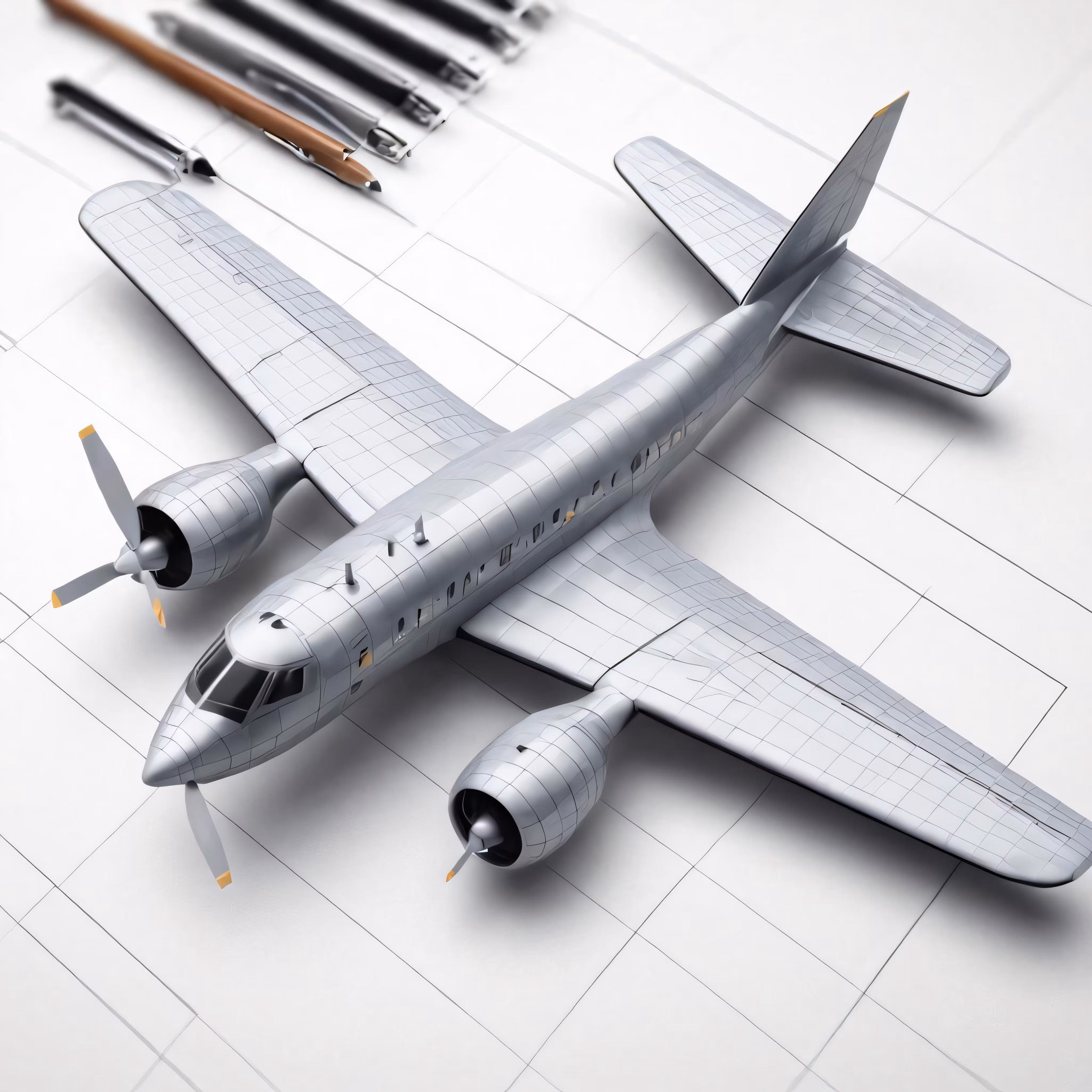High resolution picture, free to use, a toy plane, pencils, and scissors on a sheet of graph paper