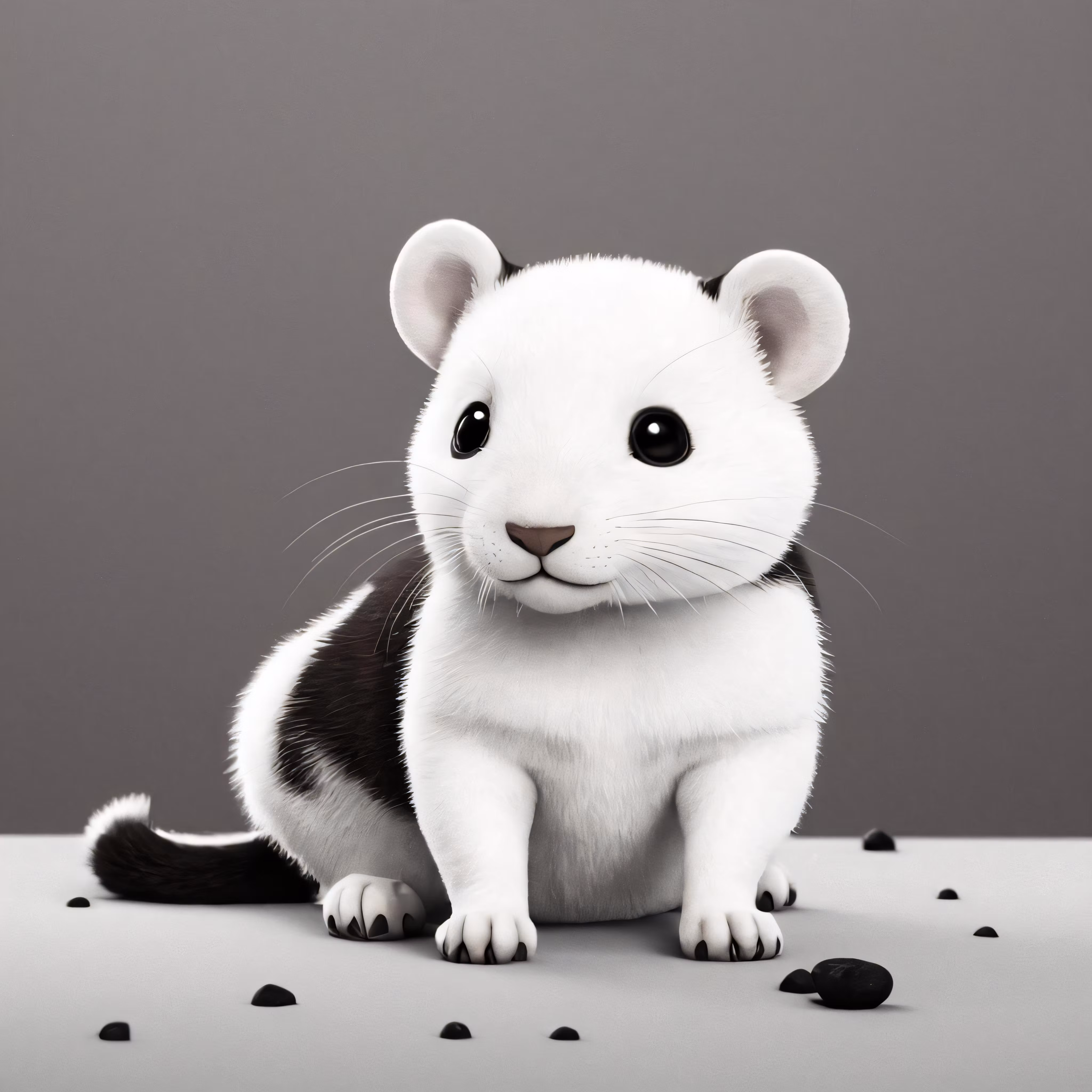High resolution picture, free to use, a toy white and brown rat with a black nose