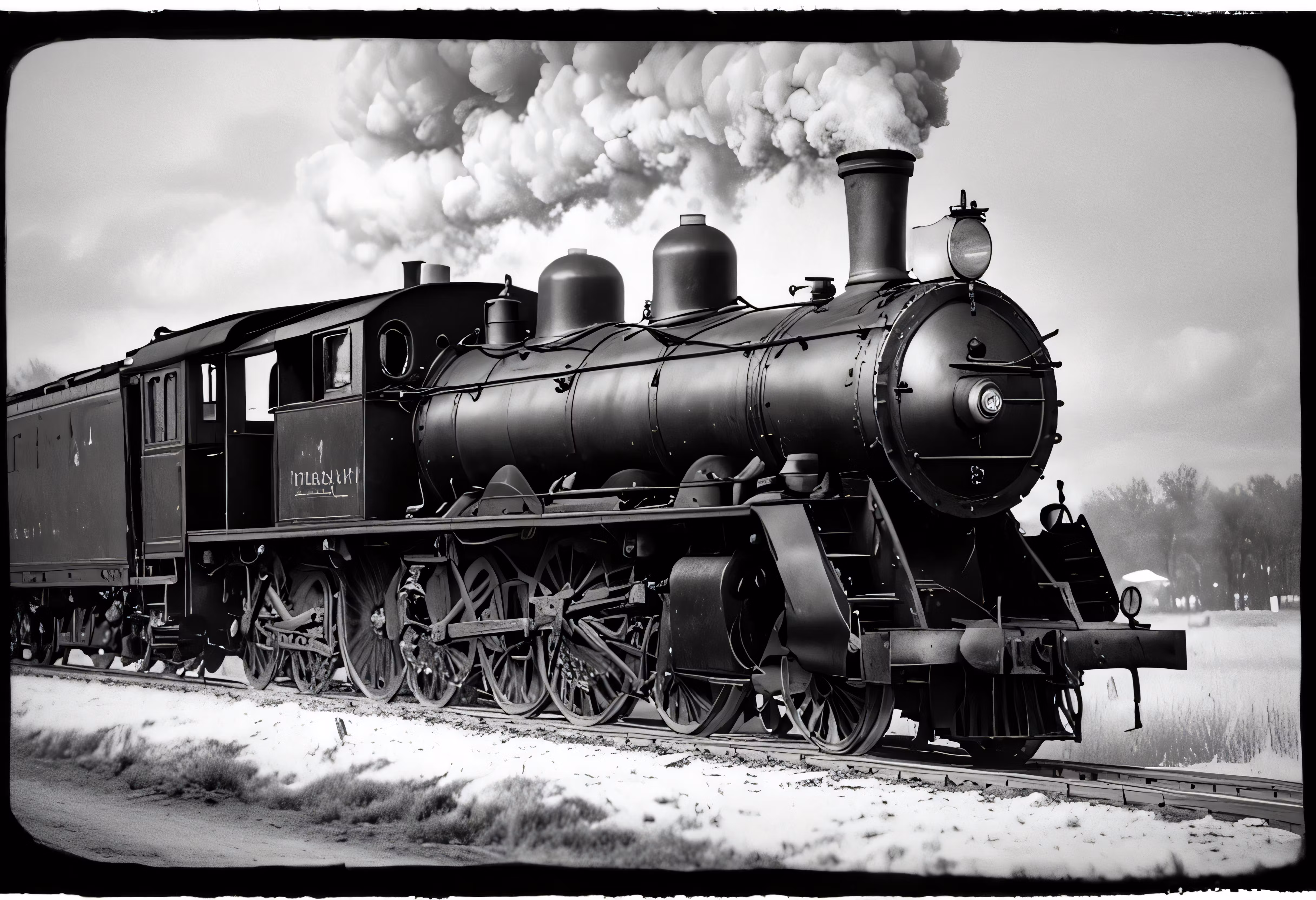 High resolution picture, free to use, a train emitting black smoke as it sits on the tracks