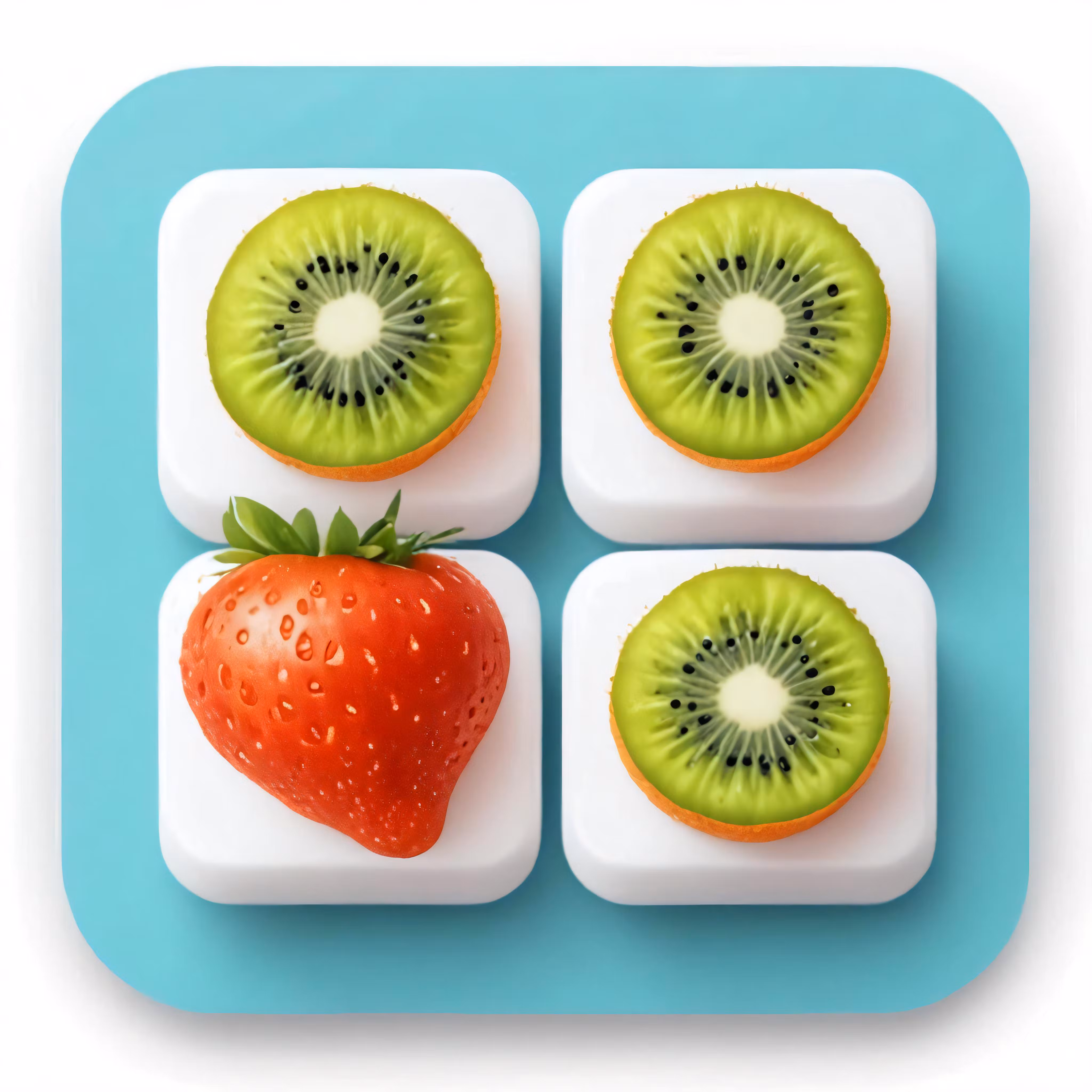 High resolution picture, free to use, a tray with four fruit pieces and a strawberry on one