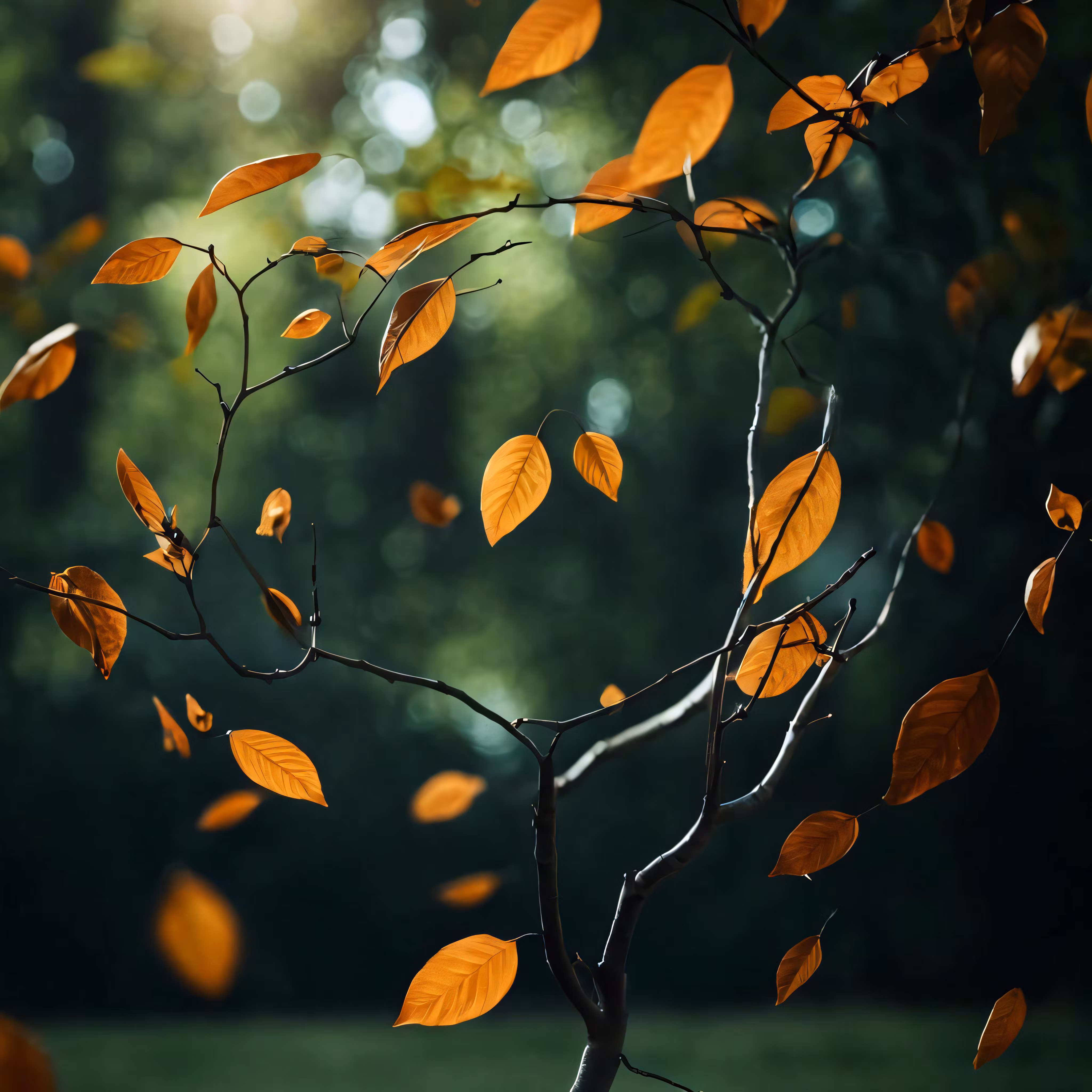 High resolution picture, free to use, a tree branch with yellow leaves in front of trees