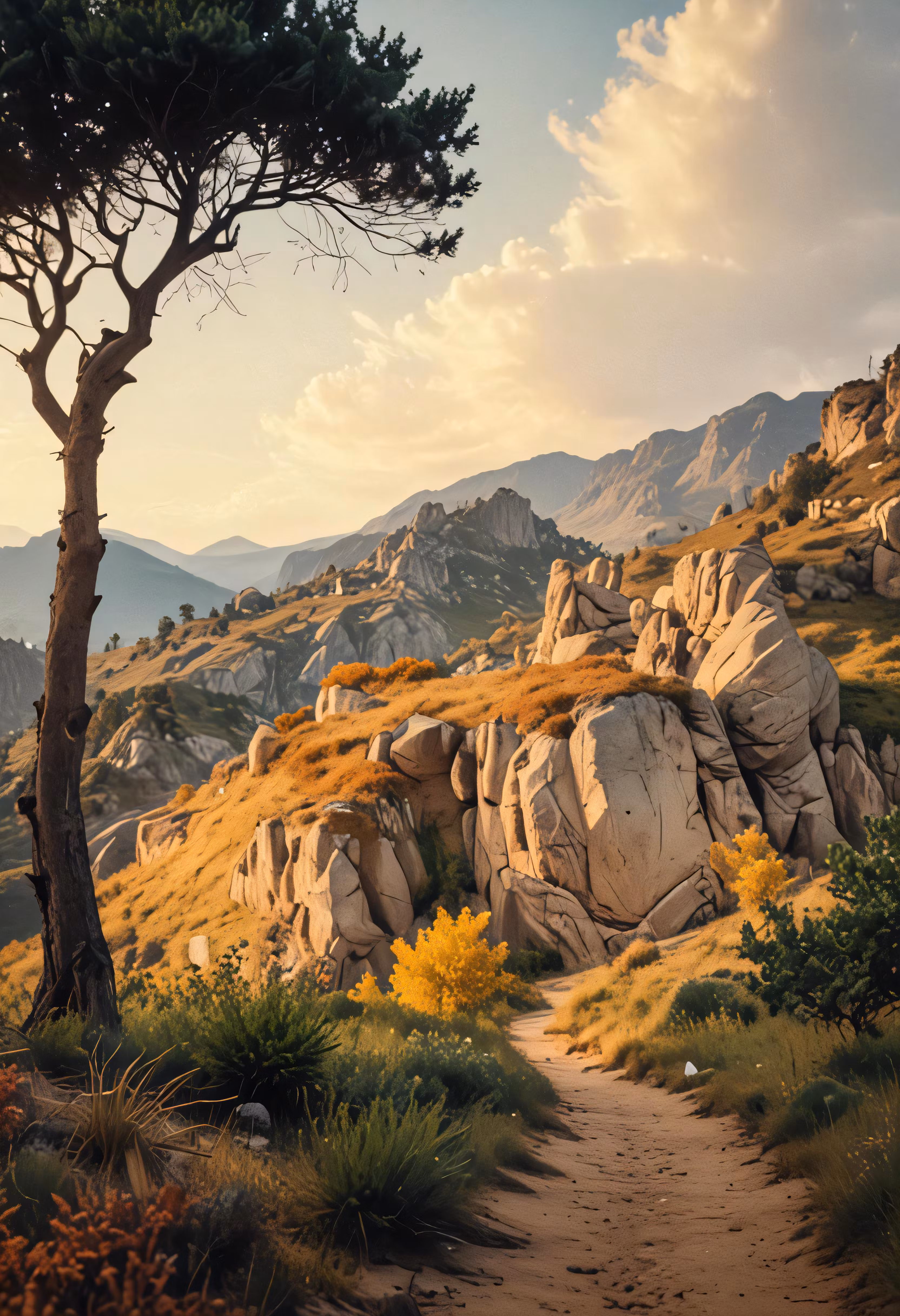 High resolution picture, free to use, a tree is growing in the mountains that are surrounded by rocks