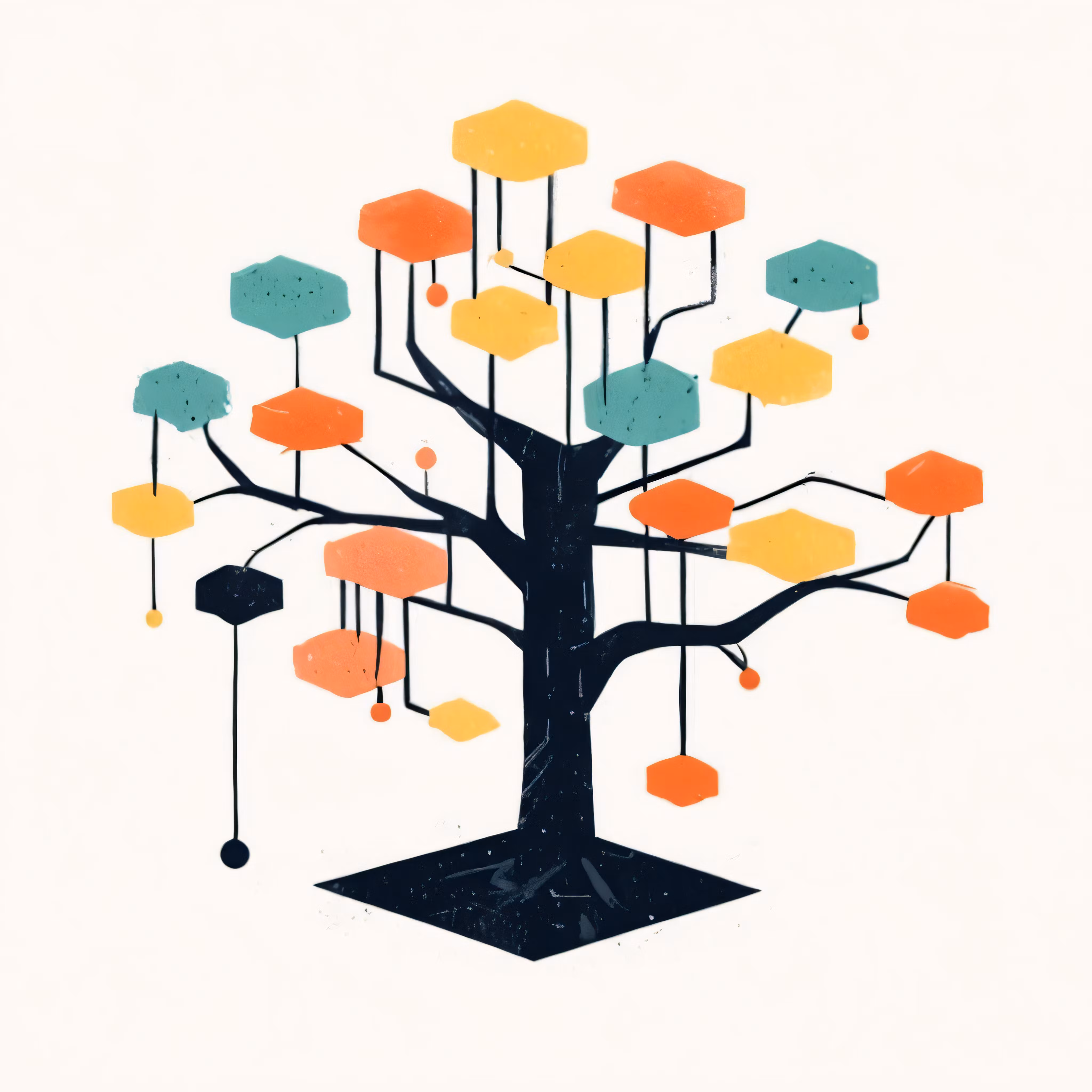High resolution picture, free to use, a tree that has various colored and black branches
