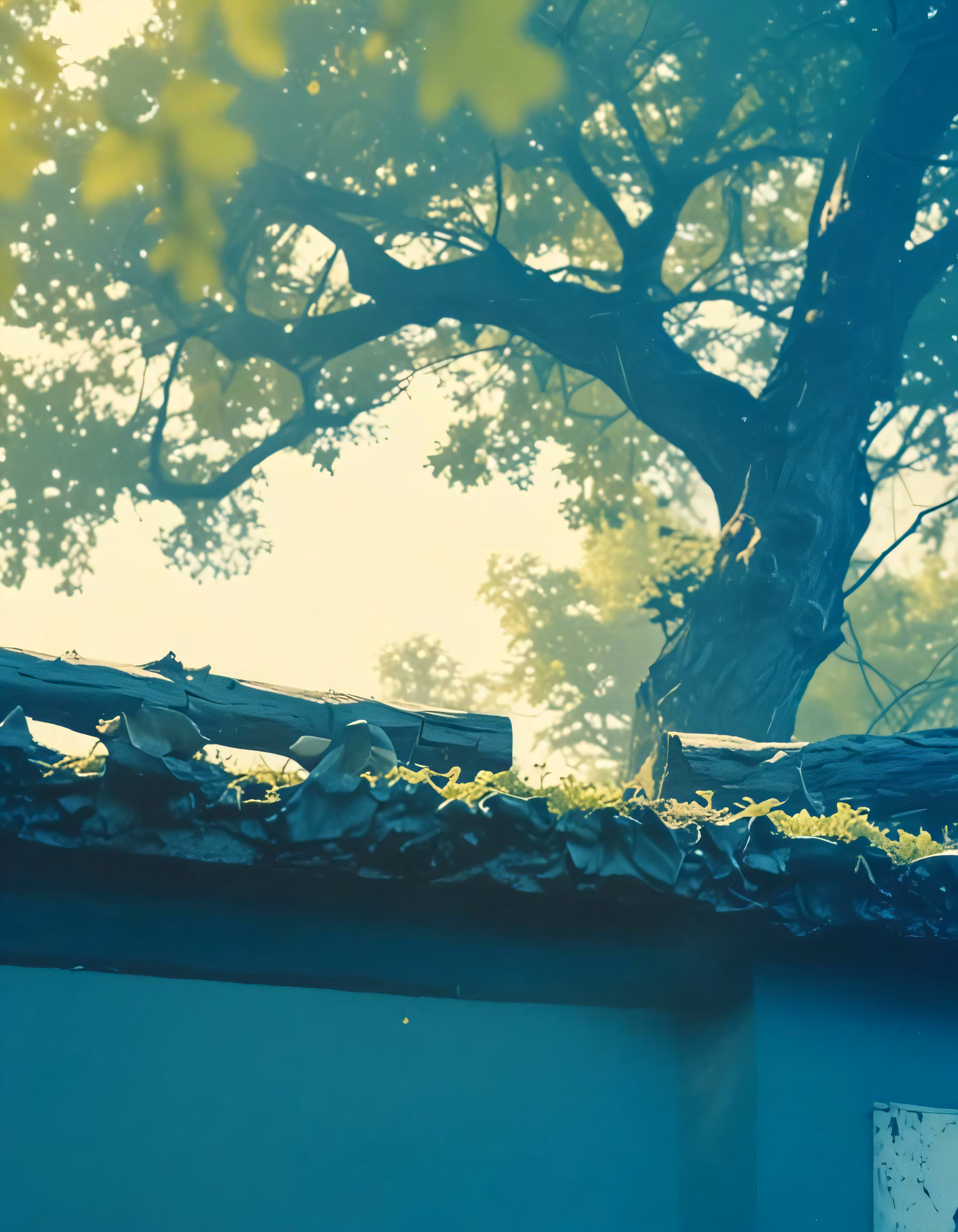 High resolution picture, free to use, a tree that is sitting on top of a building