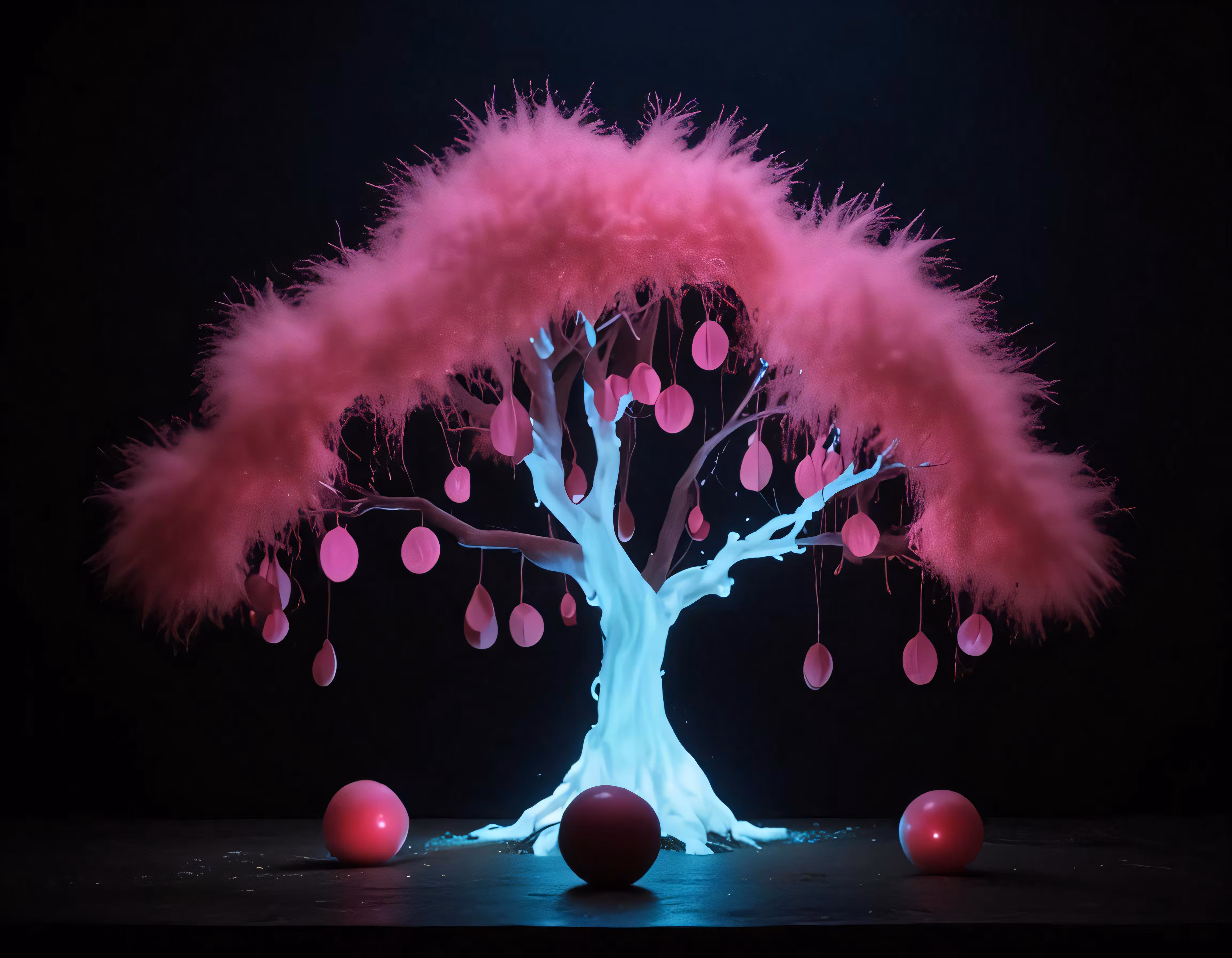 High resolution picture, free to use, a tree with decorations on it against a dark background