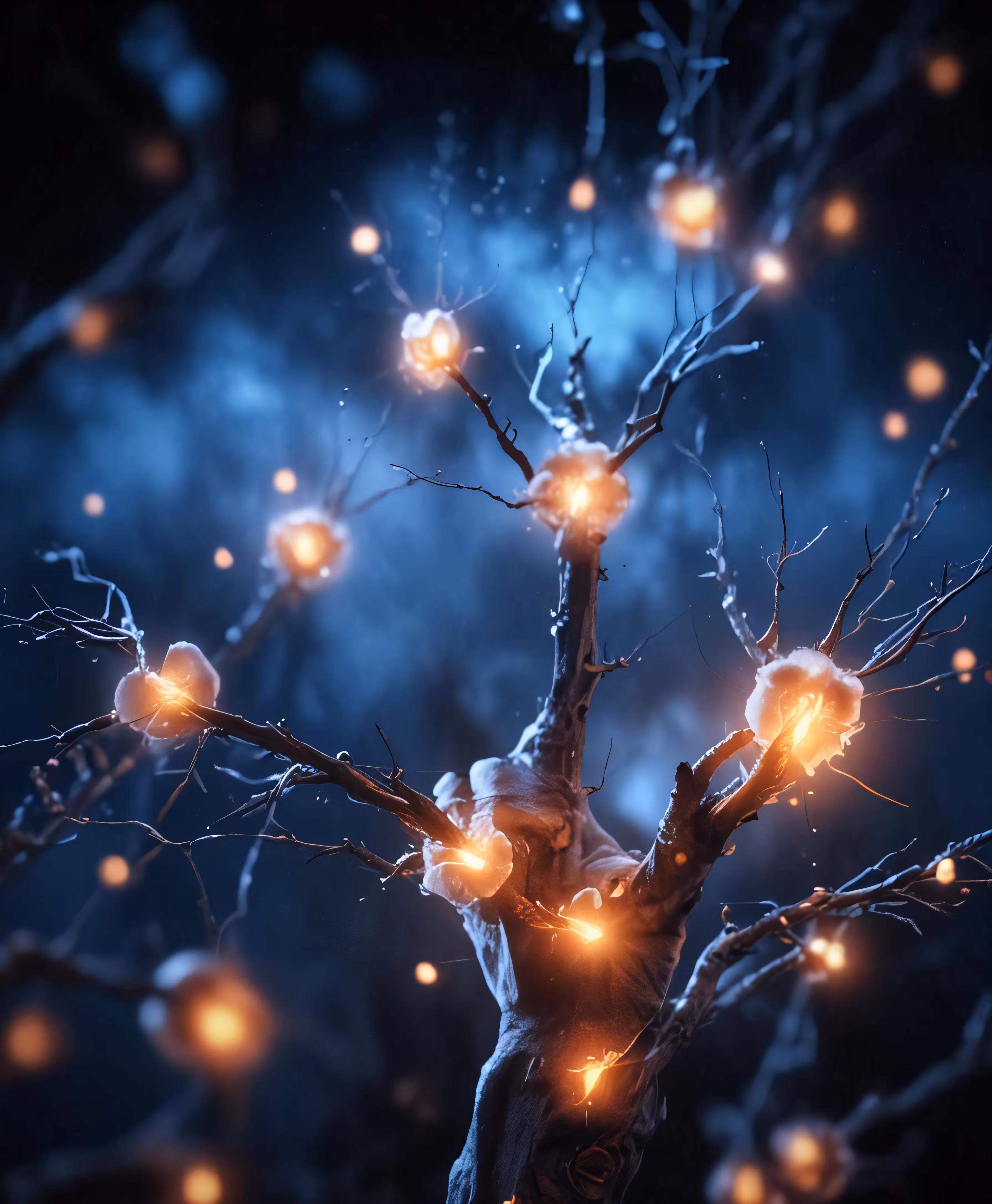 High resolution picture, free to use, a tree with lots of glowing lights on it