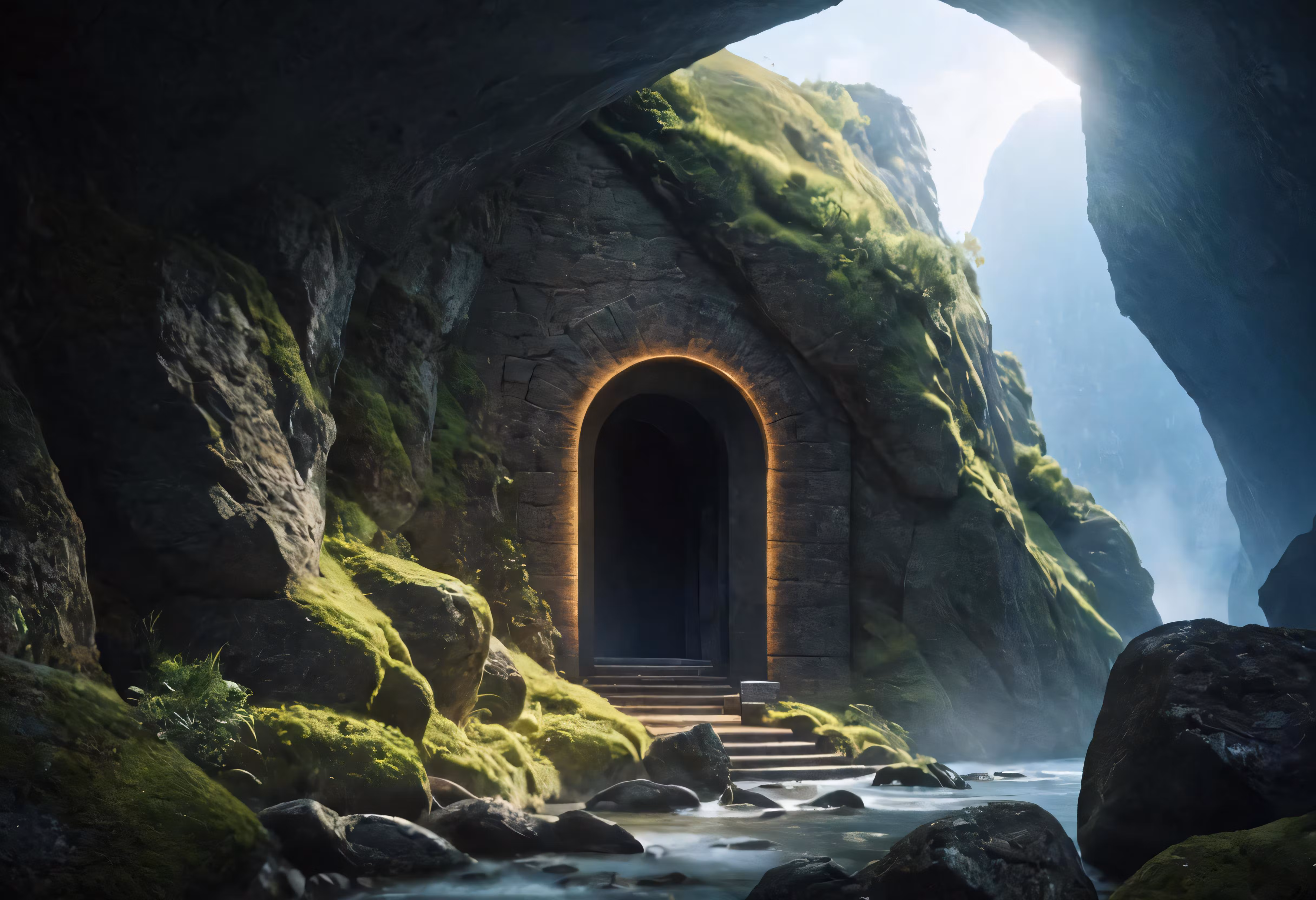 High resolution picture, free to use, a tunnel entrance leading into a small cave