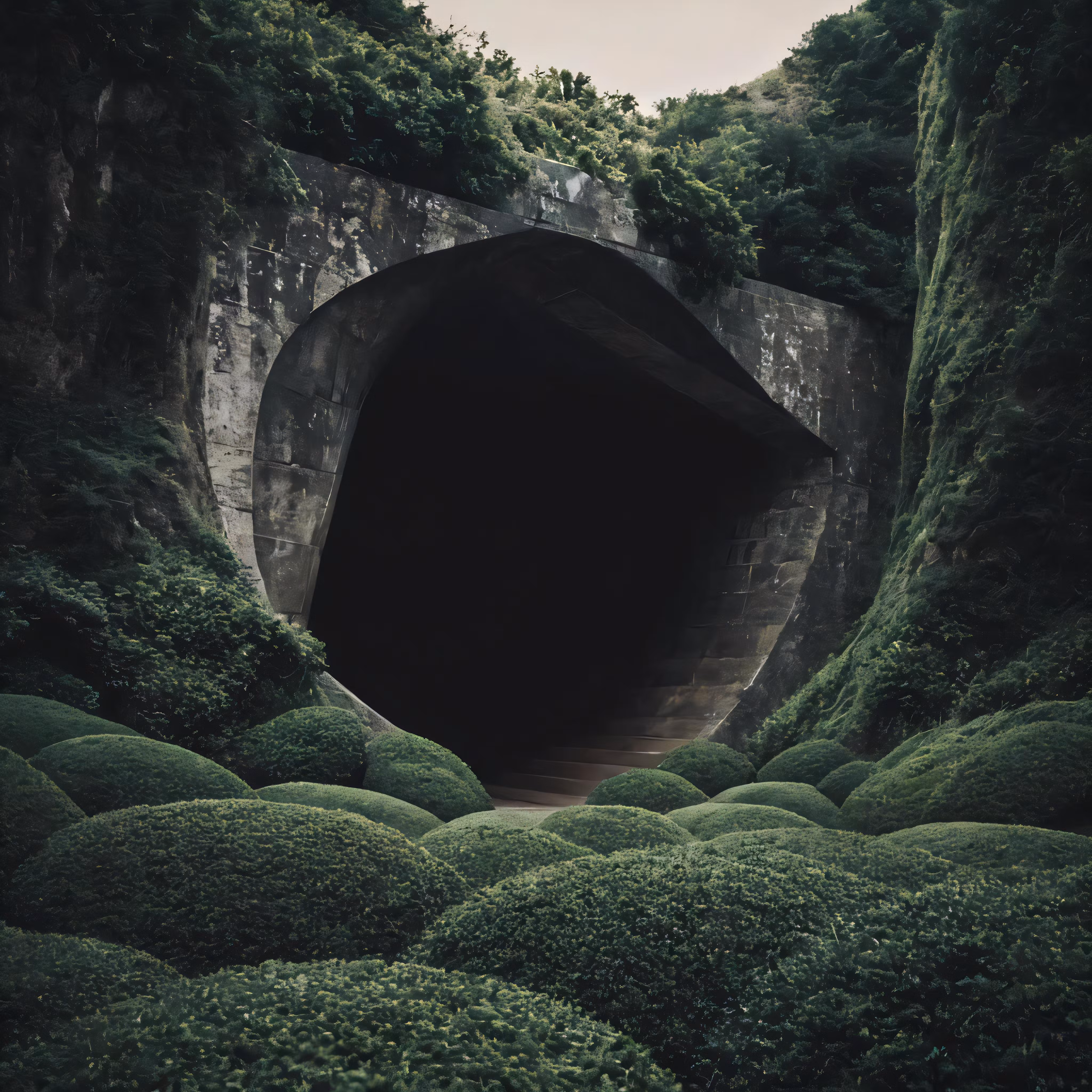 High resolution picture, free to use, a tunnel with vegetation growing in the center
