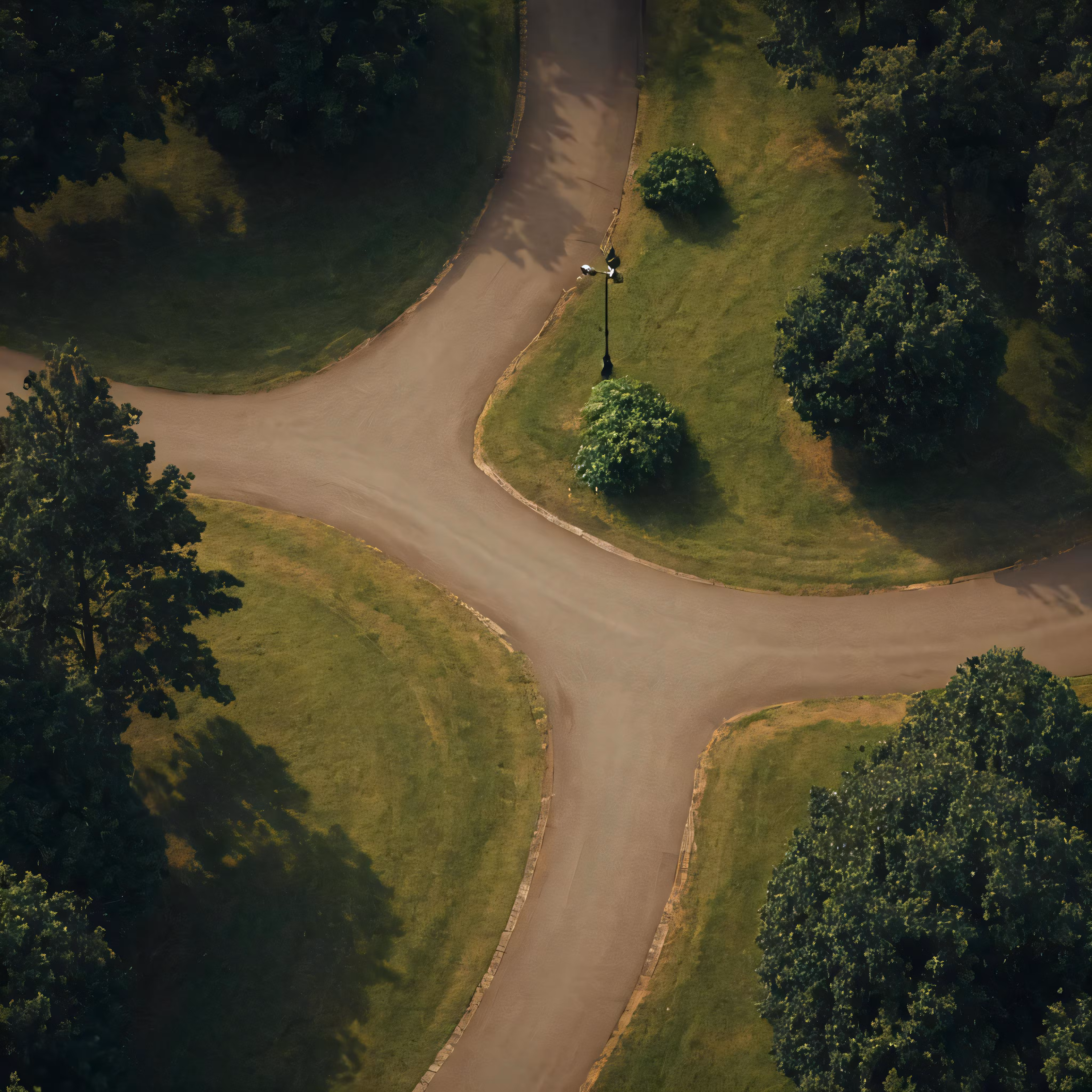 High resolution picture, free to use, a two way dirt road winding with a green field next to it