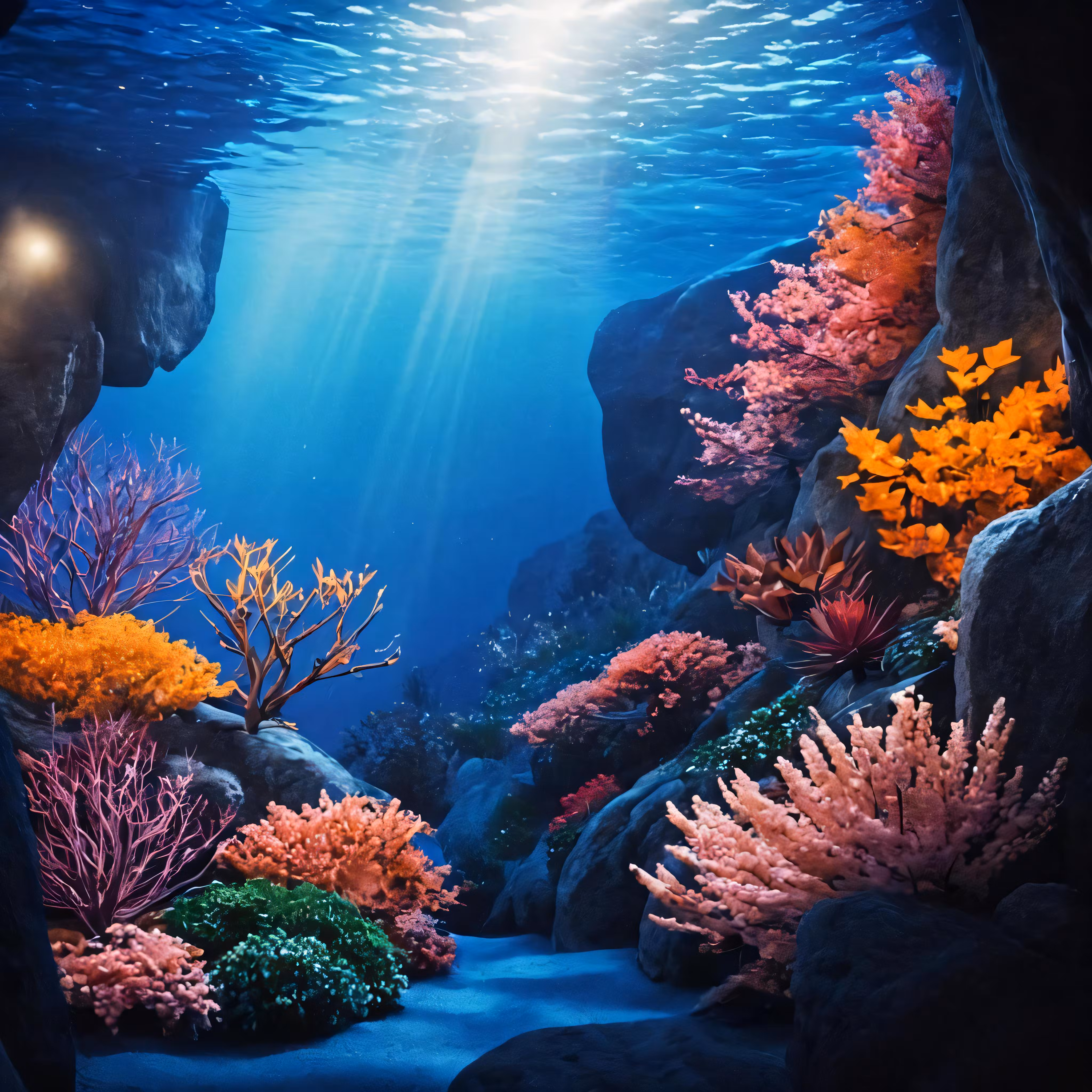 High resolution picture, free to use, a underwater scene with rocks, rocks and plants in the water