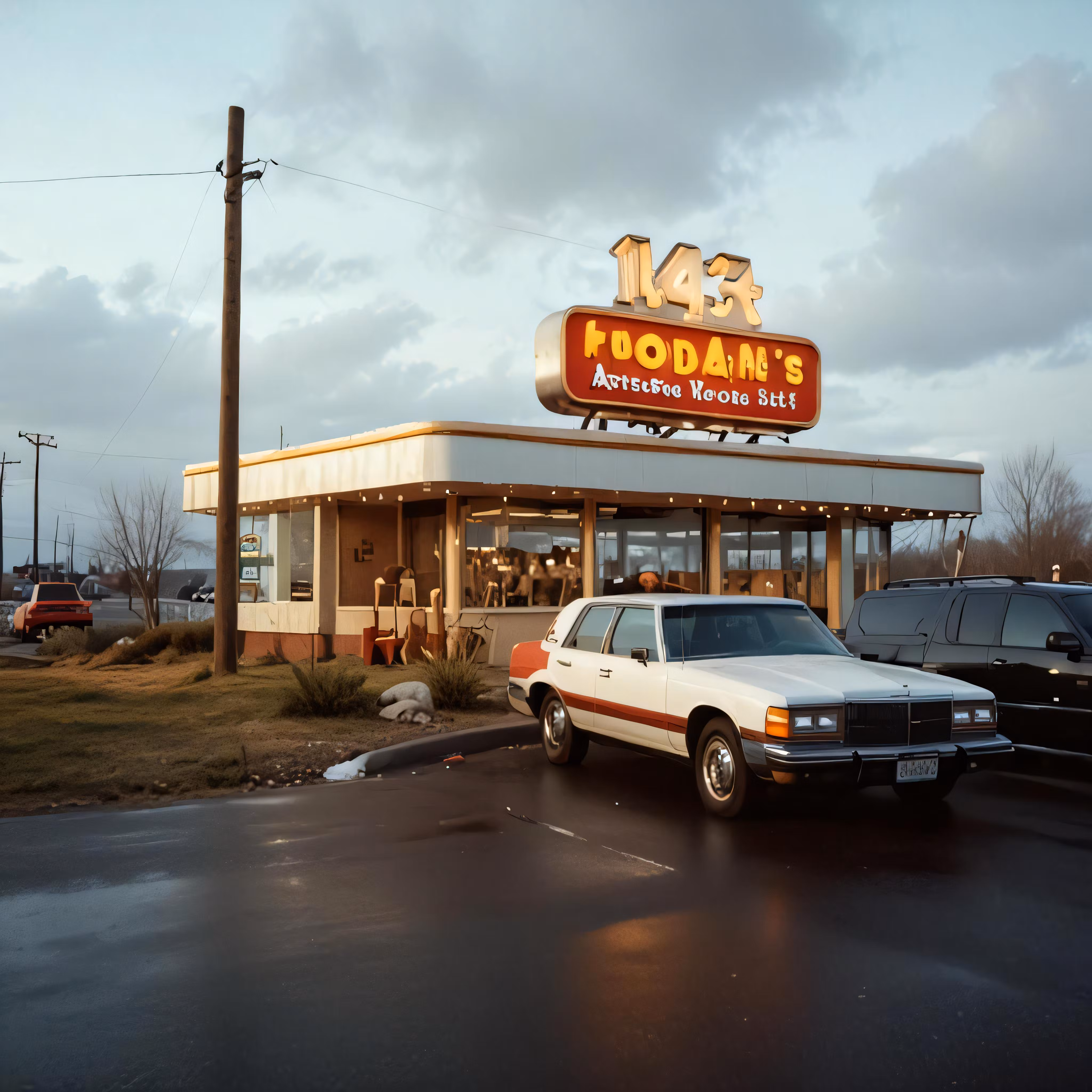 High resolution picture, free to use, a van parked in front of a large restaurant